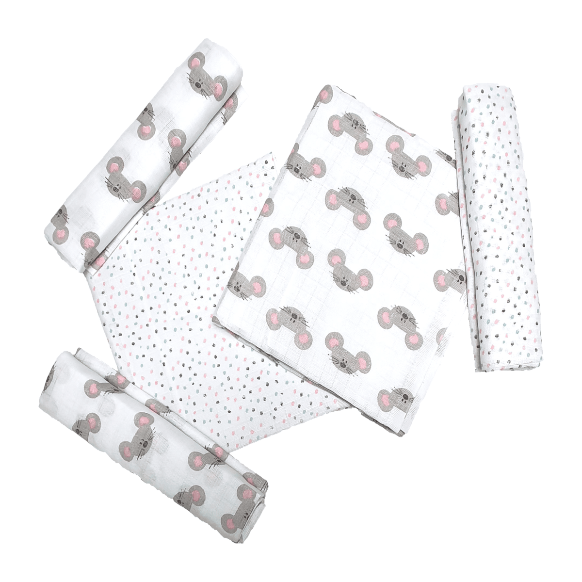 Die Mulltücher Konfetti & Mäuse von LITTLE ONE in den Maßen 80 x 80 cm bestehen aus 100% hochwertiger Baumwolle, sind absolute Alleskönner und universell einsetzbar. Sie sind besonders saugkräftig und können vielseitig verwendet werden, zum Beispiel als Spucktuch, Schmusetuch, Unterlage oder zum Einwickeln nach dem Baden. Das weiche, hautschonende Material macht die Mulltücher zum optimalen Begleiter – egal ob zu Hause oder unterwegs. Die Mulltücher kommen im praktischen 5er Pack, wovon drei mit zuckersüßen Maus-Motiven bedruckt sind und zwei dank ihres kunterbunten Konfetti-Prints gute Laune verbreiten.
