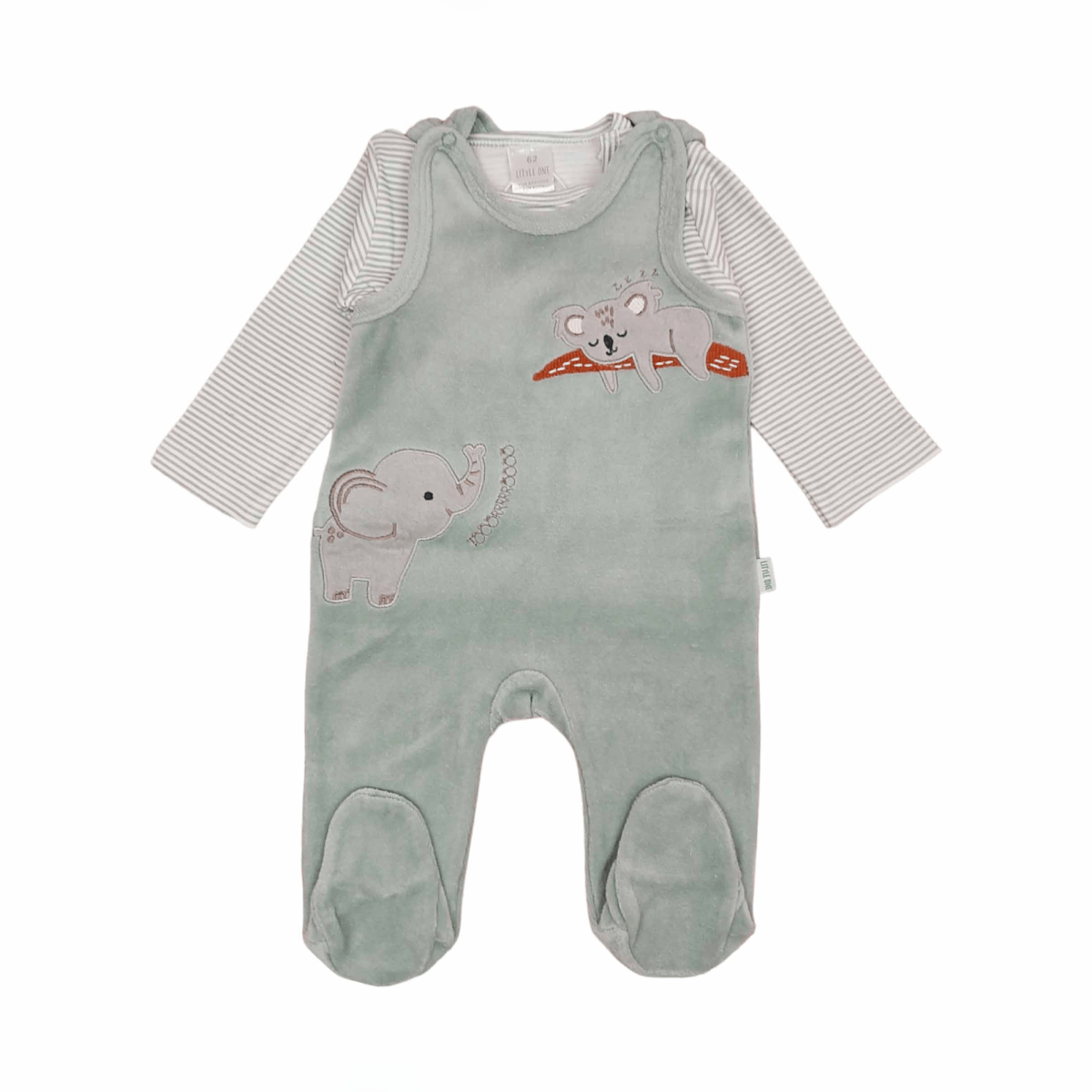 Das Nicky Strampler-Set Koala und Elefant von LITTLE ONE, bestehend aus Langarmshirt und Strampler, verzaubert mit seinen niedlichen Tiermotiven, dem süßen Streifen-Look und dem tollen Design in Samt-Optik.