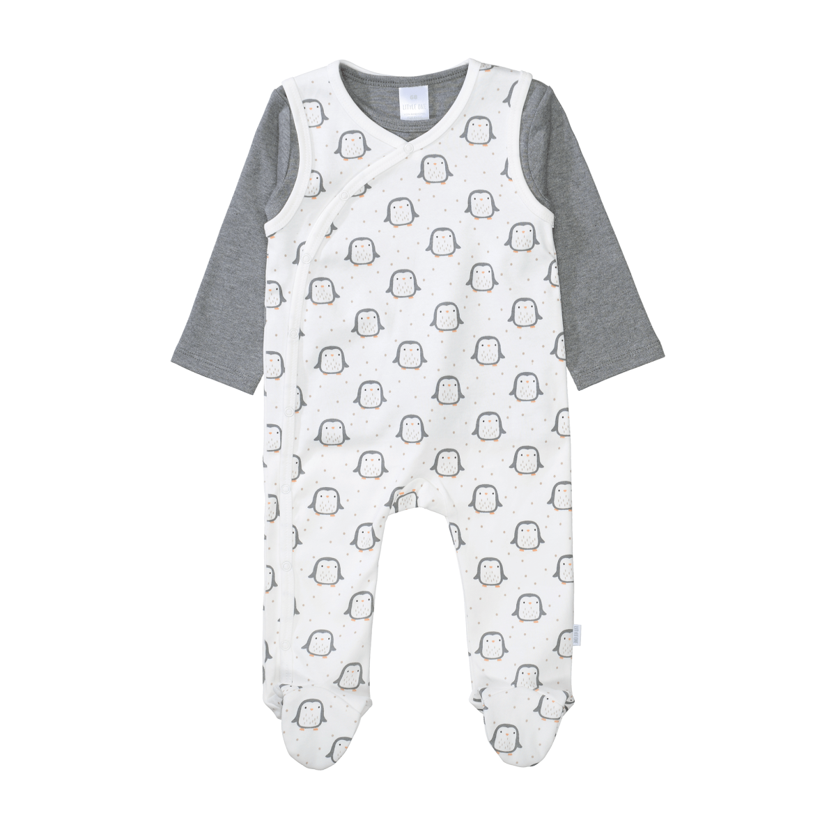 Das Stramplerset Pinguine von LITTLE ONE besteht aus einem süßen Strampler mit Pinguin-Alloverprint und einem passenden Langarmshirt – ideal für kühlere Tage. Der Strampler ist dank der durchgehenden seitlichen Druckknopfleiste besonders praktisch beim An- und Ausziehen. Hergestellt aus 100% Bio-Baumwolle sorgt das Set für ein angenehm weiches Tragegefühl auf der zarten Haut deines kleinen Lieblings.