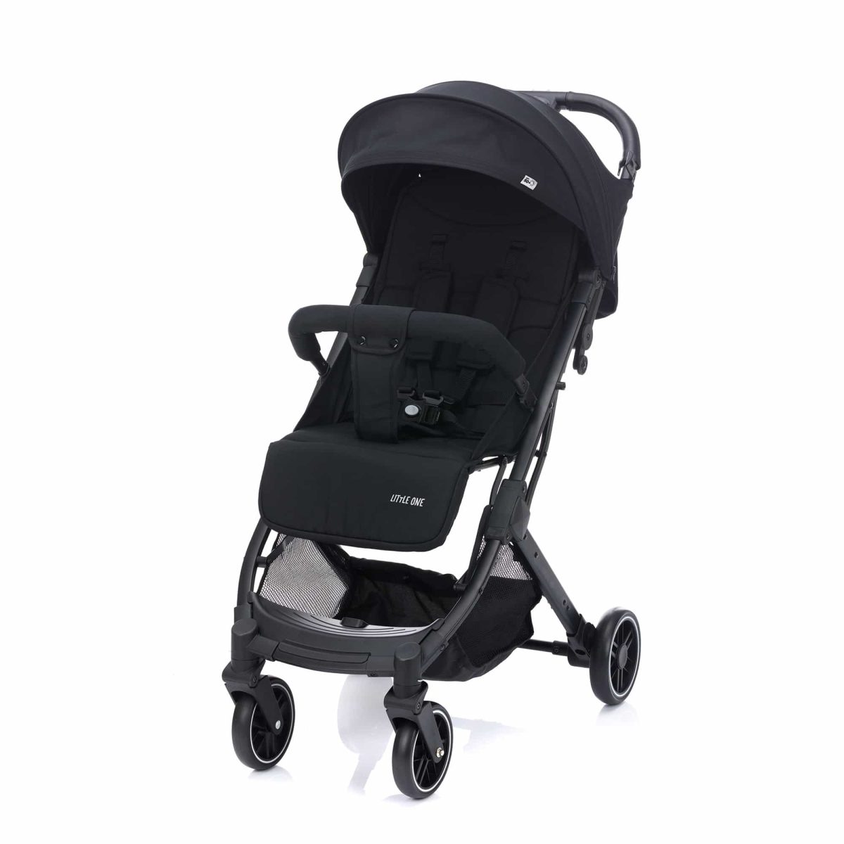 Das verlängerbare Dach sorgt für Schatten und den erforderlichen Schutz vor Sonne und Wind. Mit dem gepolsterten 5-Punkt-Gurt und dem abnehmbaren Vorderbügel seid ihr zudem immer sicher unterwegs. Bei Zwischenstopps sorgt die einfach zu bedienende Feststellbremse dafür, dass der LITTLE ONE Trip Black zuverlässig stehen bleibt. Sollte der Buggy gerade nicht in Verwendung sein, lässt er sich schnell und einfach mit nur einer Hand klein zusammenfalten.