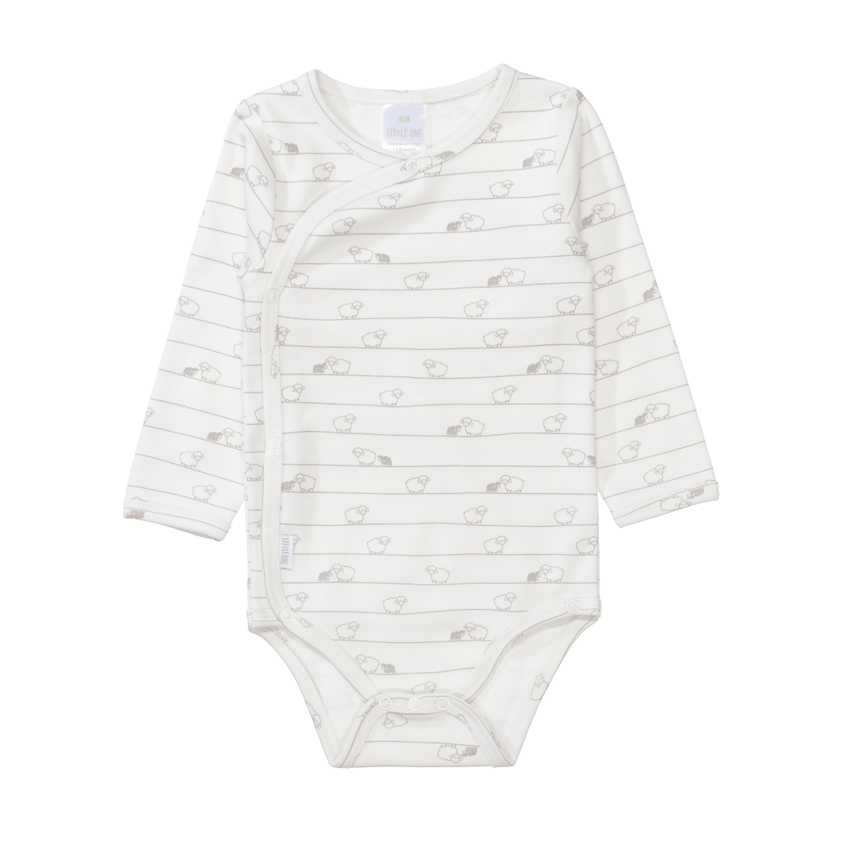 Der Wickelbody Schaf von LITTLE ONE ist ein praktischer Einteiler mit liebevollem Design – ideal für die ersten Lebensmonate deines kleinen Lieblings. Dank seitlicher Druckknopfleiste lässt sich der Body besonders leicht an- und ausziehen. Das weiche Material aus Bio-Baumwolle sorgt für angenehmen Tragekomfort und maximale Bewegungsfreiheit.