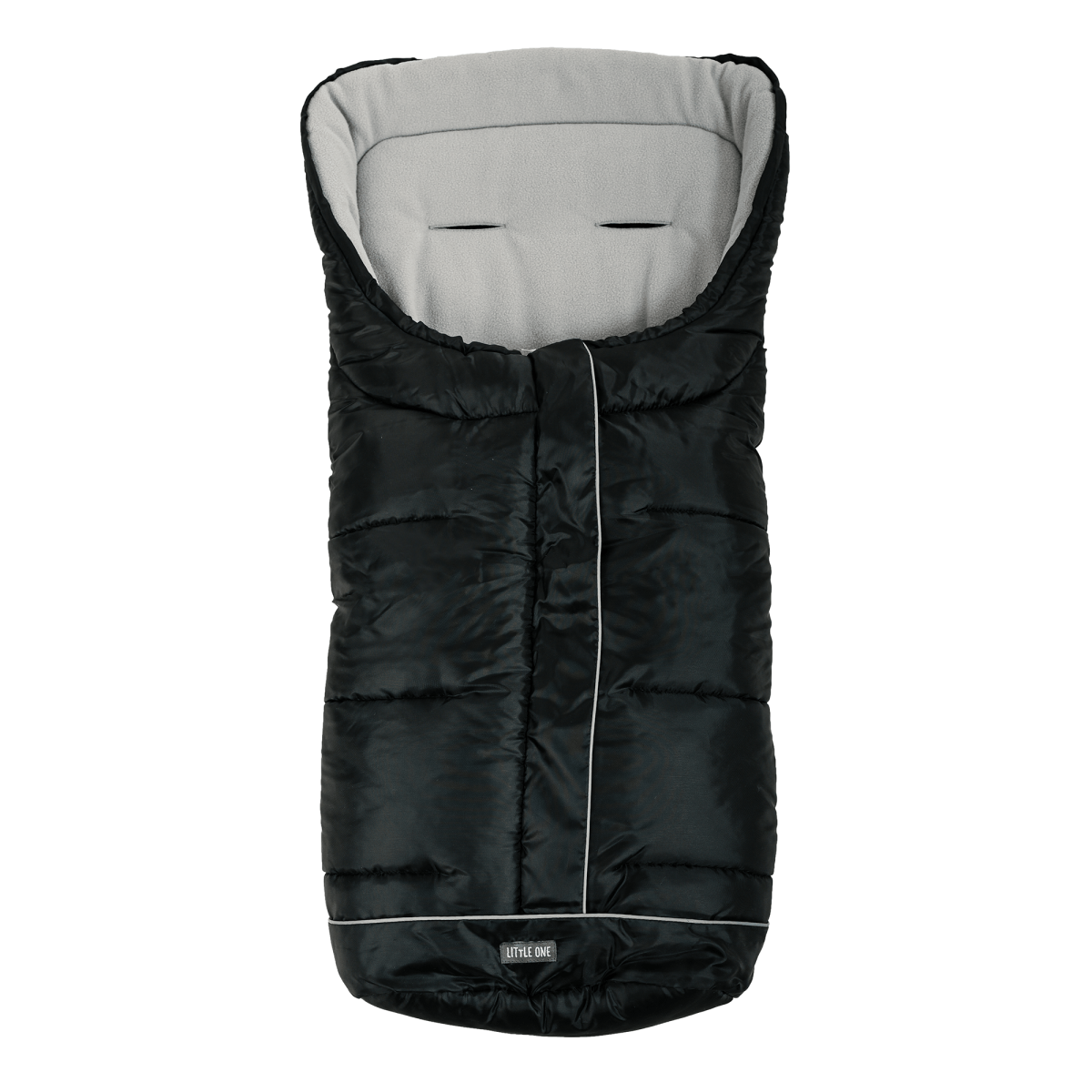 Sein universelles Design sorgt dafür, dass der schwarz-graue LITTLE ONE Fußsack optisch zu jedem Kinderwagen passt. Er ist außerdem besonders pflegeleicht und kann bequem bei 30°C in der Waschmaschine gewaschen werden.