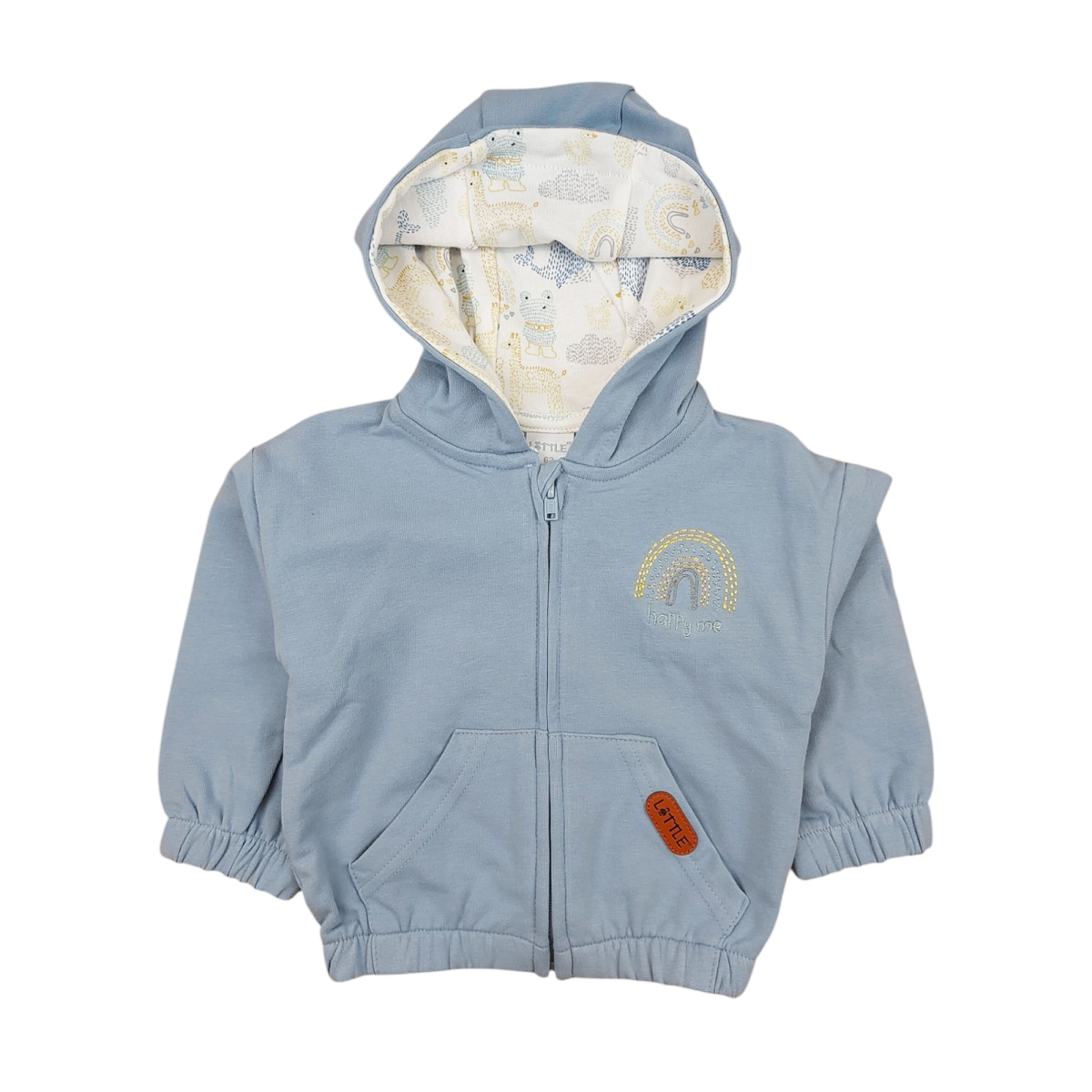Die Sweatjacke Dotties von Little ist ein süßer Begleiter für deinen kleinen Schatz. Mit ihrem fröhlichen Regenbogenmotiv an der Brust und der Aufschrift „happy me“ bringt sie gute Laune in den Alltag. Der weiche Stoff aus 100% Baumwolle sorgt für ein angenehmes Tragegefühl, während die Futter an den Ärmeln zusätzlichen Komfort bieten. Dank des praktischen Reißverschlusses ist das An- und Ausziehen kinderleicht.