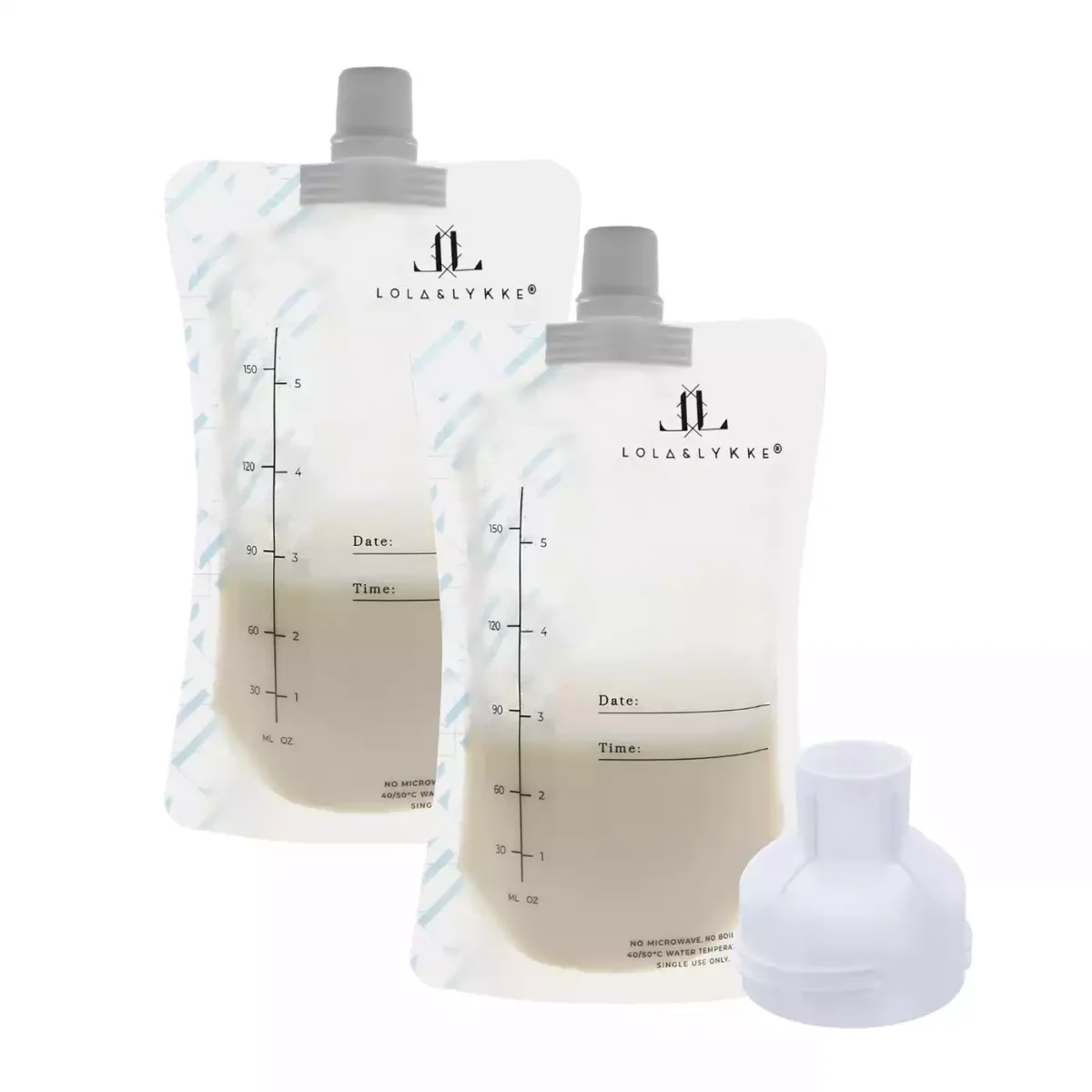 Die zehn Muttermilchbeutel und ein Adapter von Lola&Lykke erleichtern deinen Alltag und sind ideal um die wertvolle Muttermilch aufzubewahren, einzufrieren oder zu schützen. Du kannst mit Hilfe des Adapters direkt aus der elektrischen Brustpumpe von Lola&Lykke die Milch in die Beutel abpumpen. Außerdem kannst du auch dein Baby direkt aus dem Beutel füttern indem du einfach nur den Adapter an dem Beutel befestigst.