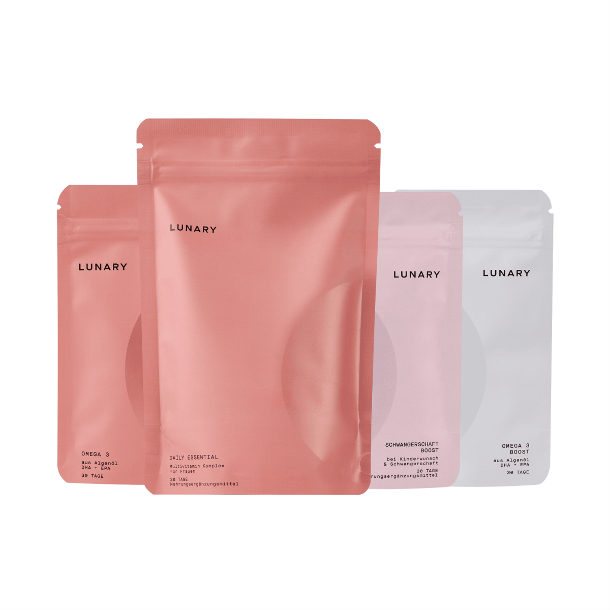 Das Set Daily Essential plus Schwangerschaft Boost von Lunary wurde speziell für Frauen in der Schwangerschaft entwickelt und begleitet dich mit einer durchdachten Nährstoffkombination – Tag für Tag. Diese liebevoll abgestimmte Kombipackung für 30 Tage versorgt dich und dein Baby mit allem, was ihr jetzt braucht, um euch optimal zu entwickeln und rundum wohlzufühlen.