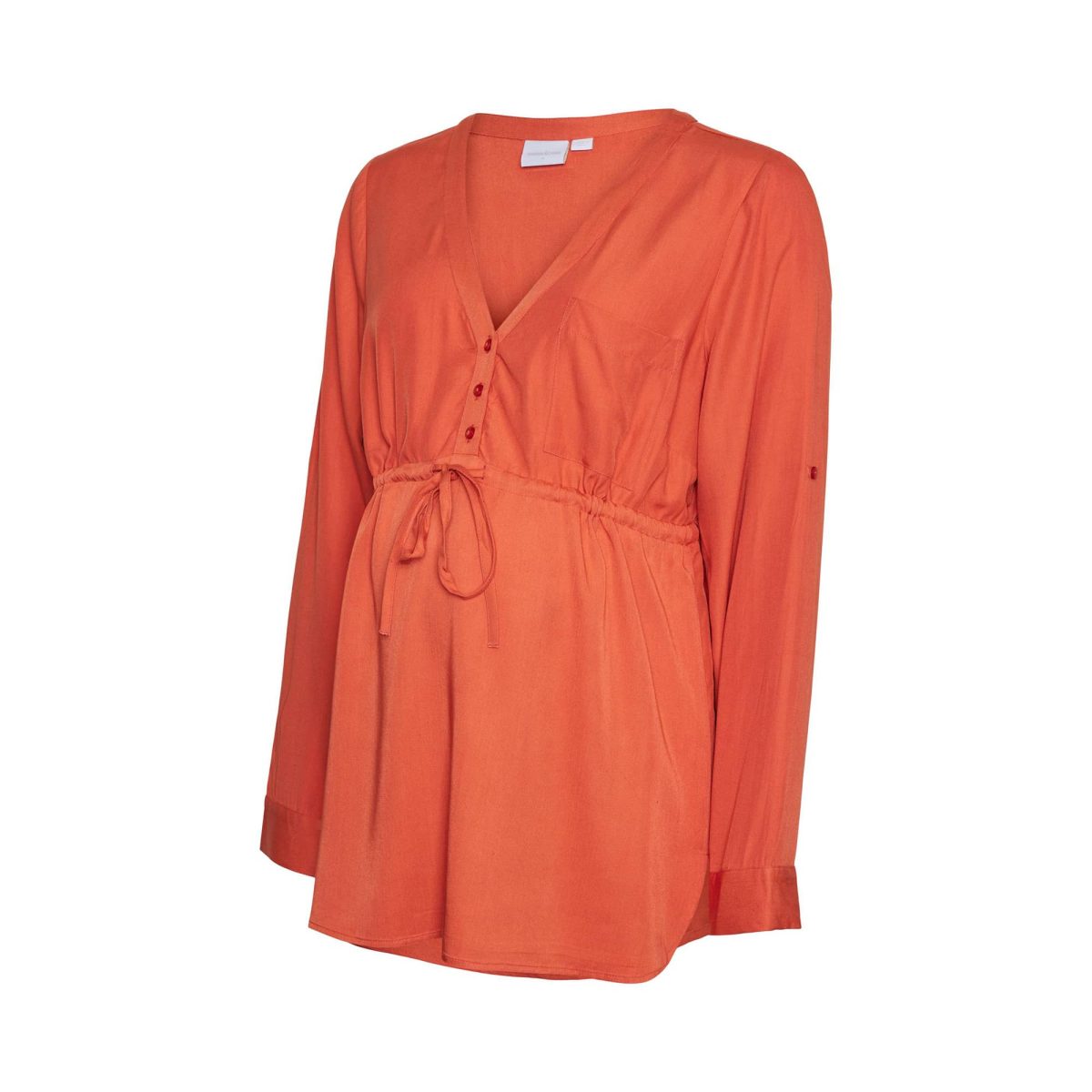 Diese farbenfrohe Mamalicious Umstands-Bluse Burnt Sienna bringt den Frühling in deine Garderobe. Die Bluse mit V-Ausschnitt überzeugt mit ihrem Kordelzugverschluss, der Schnittlinie über dem Bauch, der Stillfunktion mit Verschluss sowie mit ihren Knopf-Details.