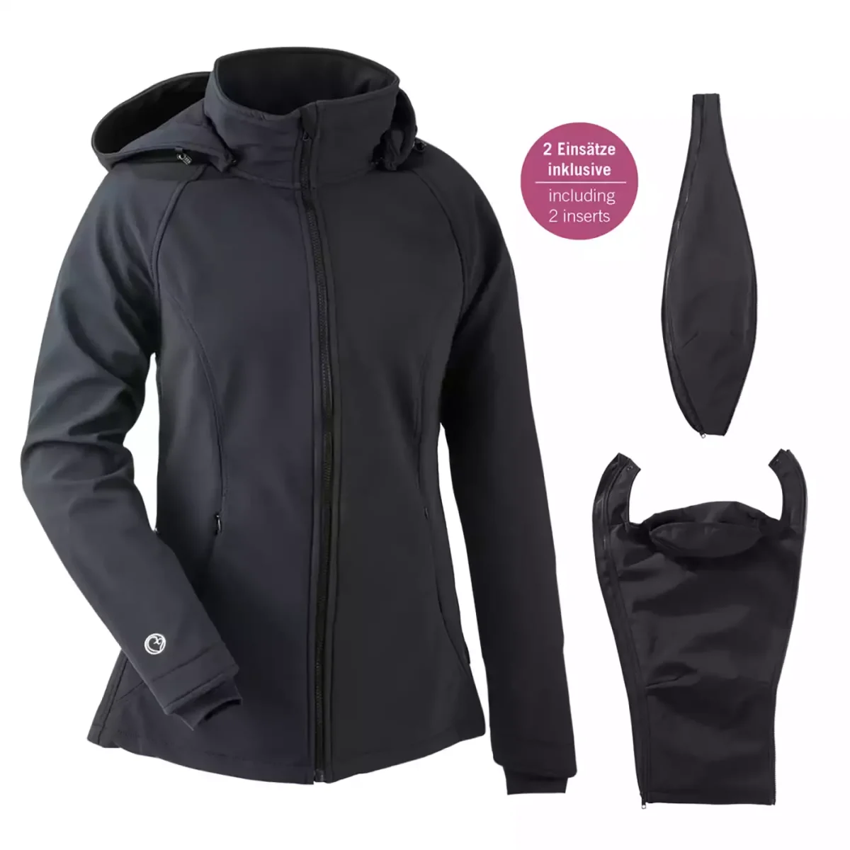 Die mamalila Softshelljacke kann mit einem Handgriff in eine Umstandsjacke oder eine Babytragejacke erweitert werden. Dafür wird sie mit zwei Einsätzen ausgeliefert, die einfach in die passenden Reißverschlüsse eingezippt werden. So kann der Babybauch, aber auch das getragende Baby bequem mit unter die Jacke. Und wenn beides mal nicht dabei ist: einfach Einsatz raus, und es ist eine normale Jacke.