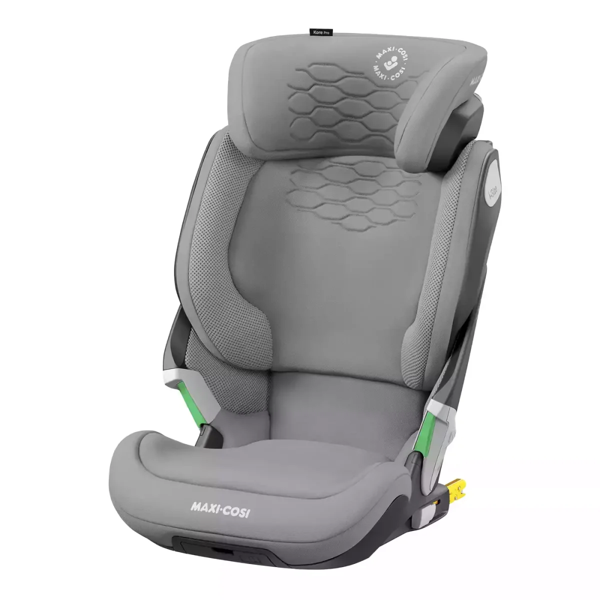 Der Kore Pro i-Size Authentic Grey ist ein moderner designter Sitz mit hochwertigen Bezügen und Details.