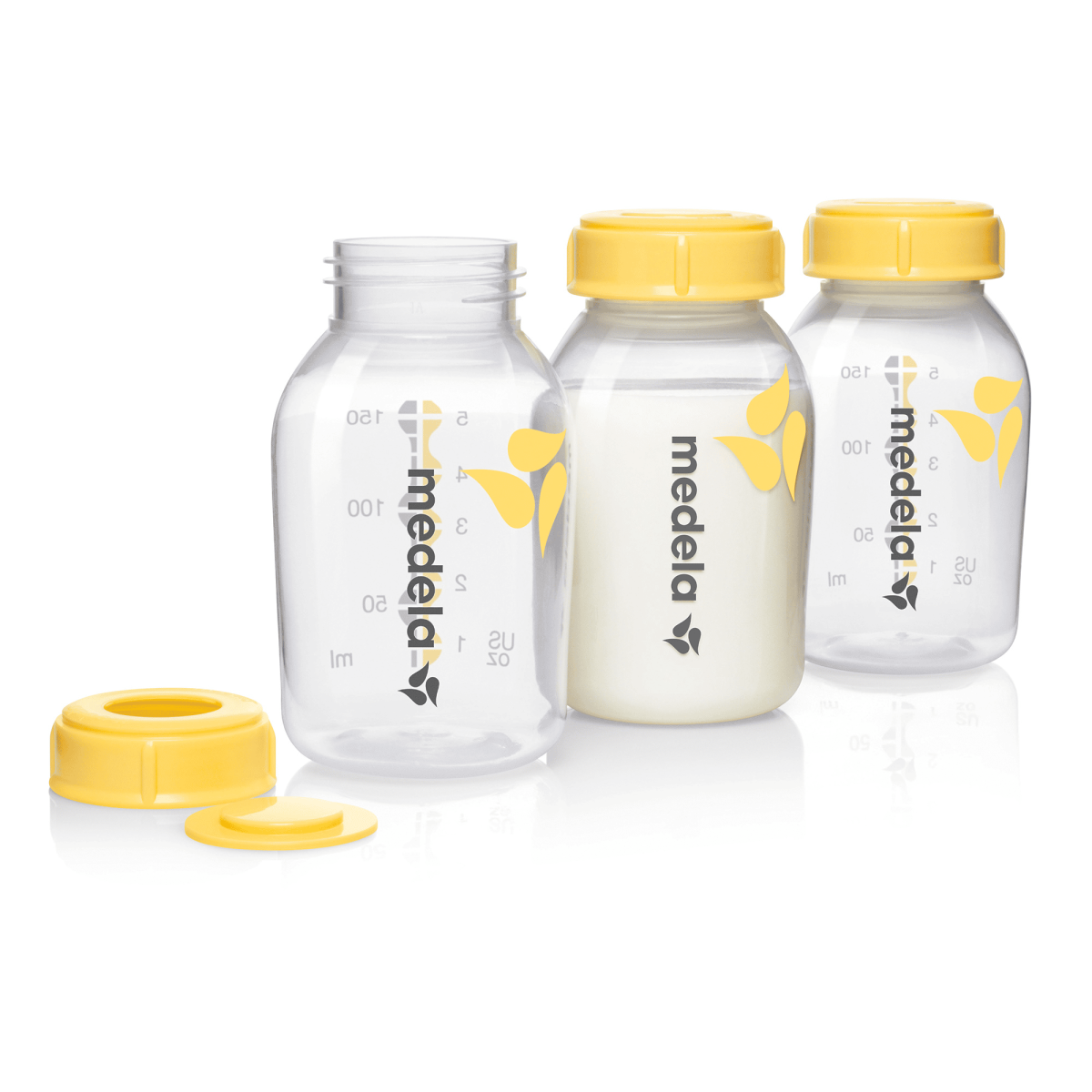 Mit diesen leichten Muttermilchflaschen von Medela kannst du deine kostbare Muttermilch sicher aufheben, sodass kein Tropfen verloren geht. Die Flaschen kommen im praktischen 3er Pack und besitzen ein Fassungsvermögen von je 150 ml. Außerdem sind die Muttermilchflaschen frei von BPA und leicht zu reinigen, da sie für die Geschirrspülmaschine und zur Desinfektion in der Mikrowelle geeignet sind.