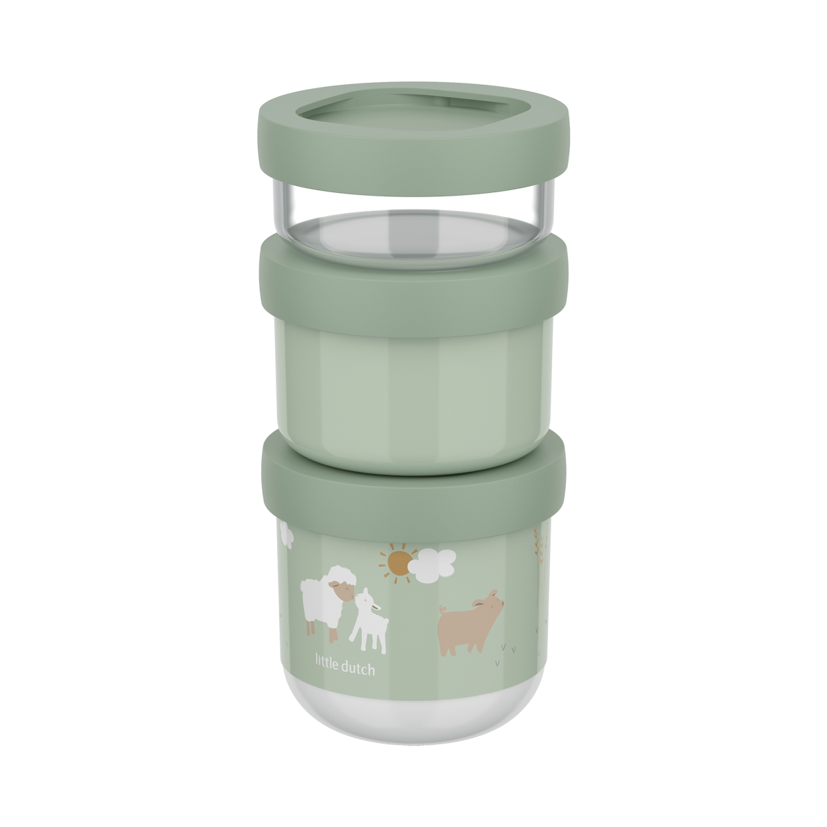 Das 3er-Set Snackbox Mio Little Farm von Mepal bietet ausreichend Platz für Snacks und kleine Leckereien. Es besteht aus drei stapelbaren Schalen, die sich sicher zusammenklicken lassen – so bleibt alles ordentlich und kompakt verstaut.