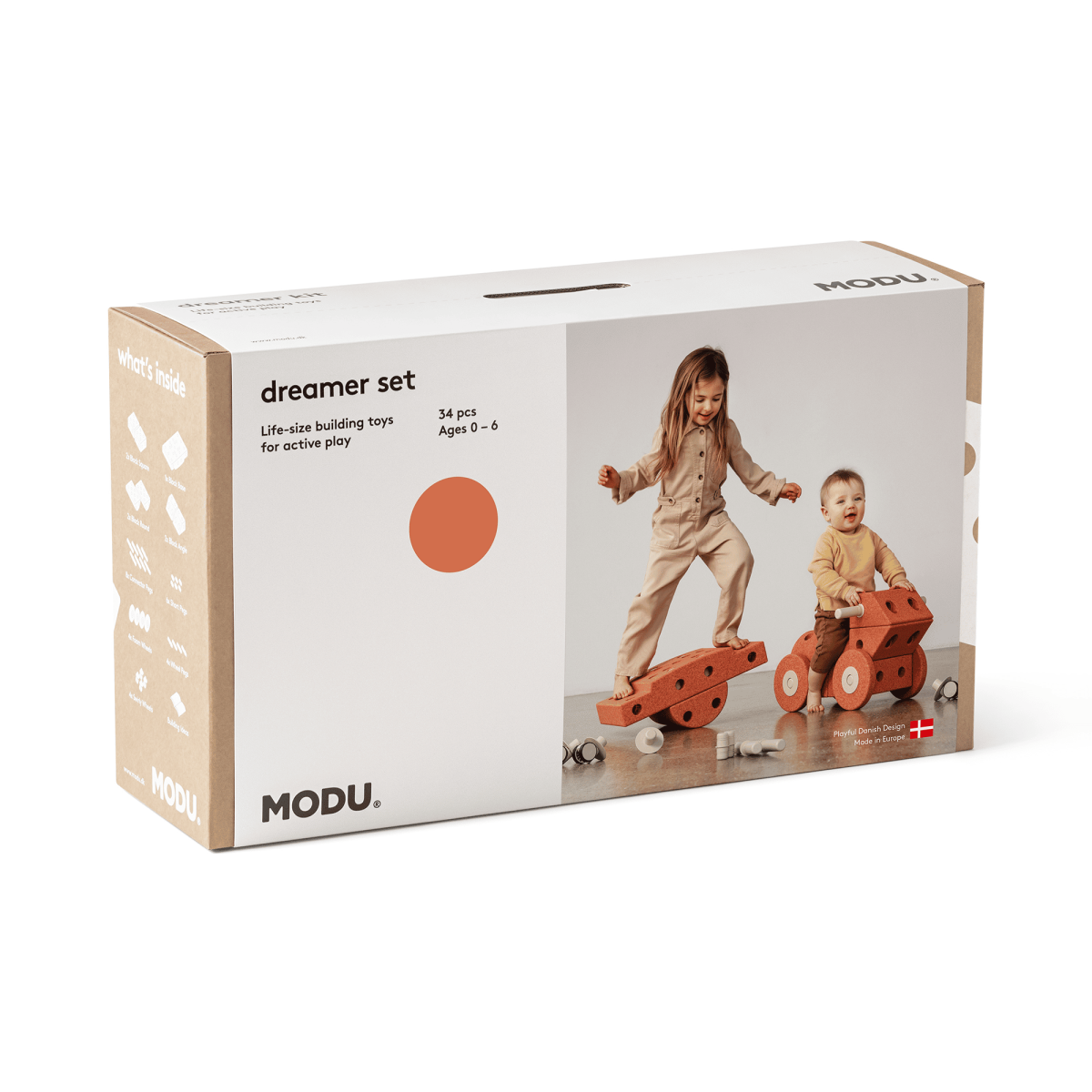 Das MODU Dreamer Set lässt die Träume deines Kindes wahr werden: Mit diesem faszinierenden Bauset, bestehend aus 34 Teilen, können mehr als 25 einzigartige, lebensgroße Spielzeuge und Kreationen erschaffen werden. Die Teile ermöglichen fantasievolles Spielen und fördern die Kreativität deines kleinen Abenteurers.
