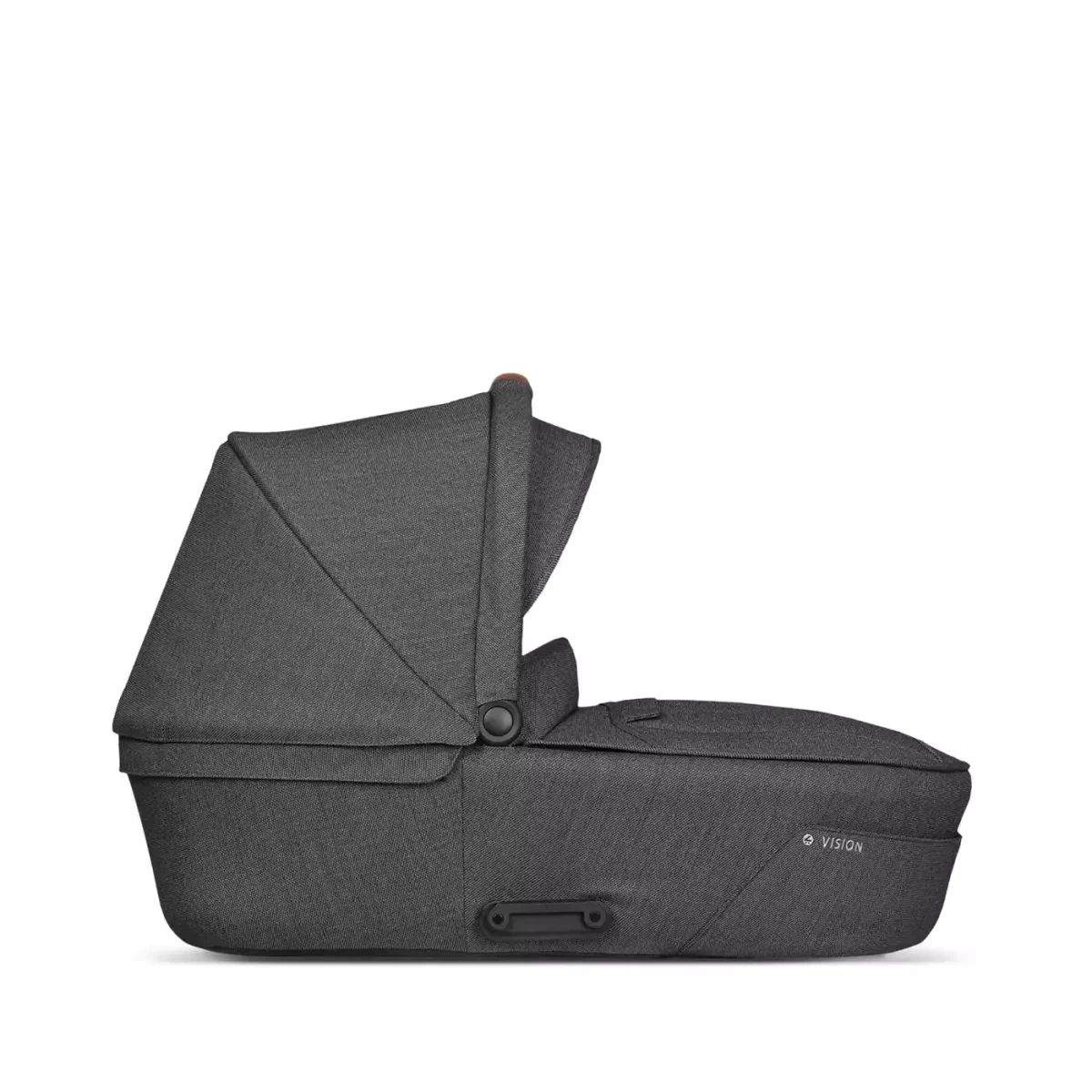 Die Tragewanne Icon im Design Vision Smokey Grey von Mutsy kann ab Geburt verwendet werden. Die Wanne kann ganz einfach auf das Icon Gestell (separat erhältlich) geklickt werden und platzsparend zusammengeklappt werden. Die Babytragewanne ist extra hoch auf dem Gestell positioniert, sodass du deinen Rücken beim Rausheben deines Babys schonst.