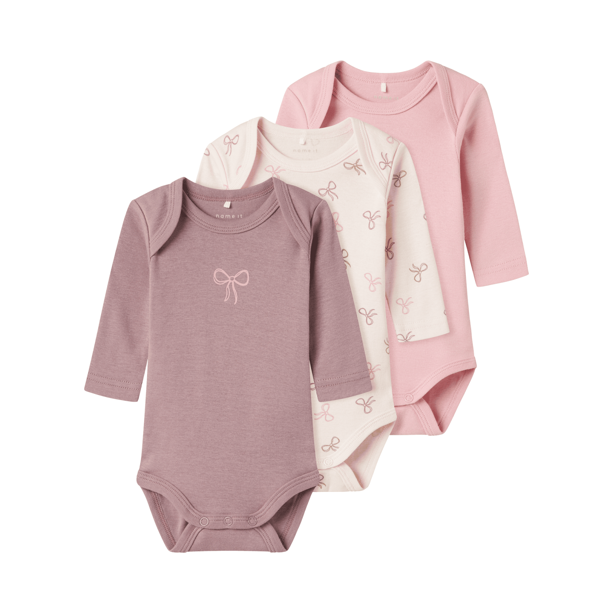 Dieses süße 3er Set Langarmbodys von name it hat funktionelle Druckknopfverschlüsse, die das Wickeln und Anziehen erleichtern. Die Bodys kommen mit einem entzückenden, niedlichen Design daher.