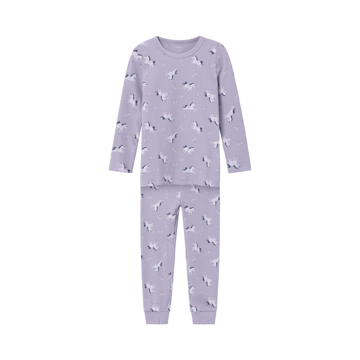 Der Schlafanzug Einhörner von name it garantiert magische Träume. Das niedliche Einhorn-Design zaubert ein Lächeln auf das Gesicht deines kleinen Schatzes, während der weiche Rippstrick und die elastische Taille für einen angenehmen Tragekomfort sorgen. Dabei ist das atmungsaktive Material aus Baumwolle und Elasthan besonders sanft zu der Haut deines Kindes.