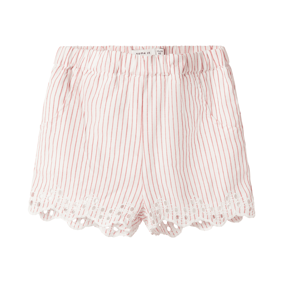Die Shorts von name it ist ein sommerliches Must-have für kleine Trendsetterinnen. Mit zarten Streifen und dekorativer Stickerei am Beinabschluss überzeugt sie durch ein verspieltes Design. Der elastische Bund sorgt für einen angenehmen Sitz, während der leichte Baumwollstoff an warmen Tagen besonders angenehm zu tragen ist.