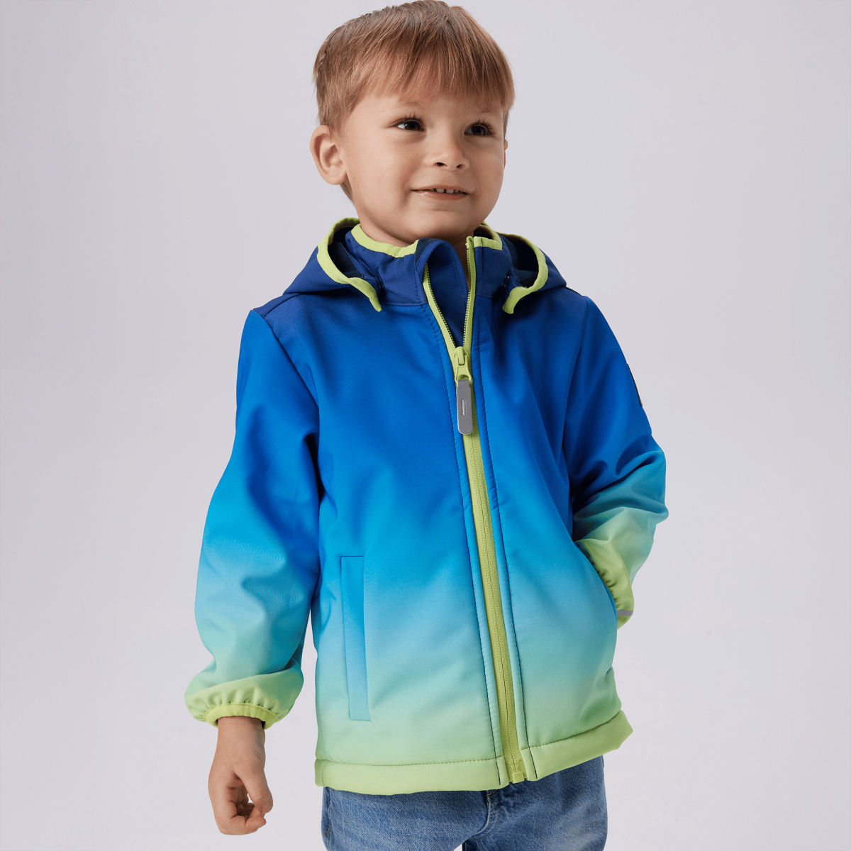 Die Softshelljacke von name it ist die perfekte leichte und wasserdichte Outerwear für aktive Kinder. Der Farbverlauf in Blau und Grün verleiht der Jacke eine stylische Optik, während die reflektierenden Details für mehr Sichtbarkeit sorgen. Dank der abnehmbaren Kapuze und dem Kinnschutz am Reißverschluss bietet die Jacke zusätzlichen Komfort und Sicherheit. Die hochwertige Membran macht sie komplett wasserdicht, winddicht und atmungsaktiv – ideal für wechselhaftes Wetter.
