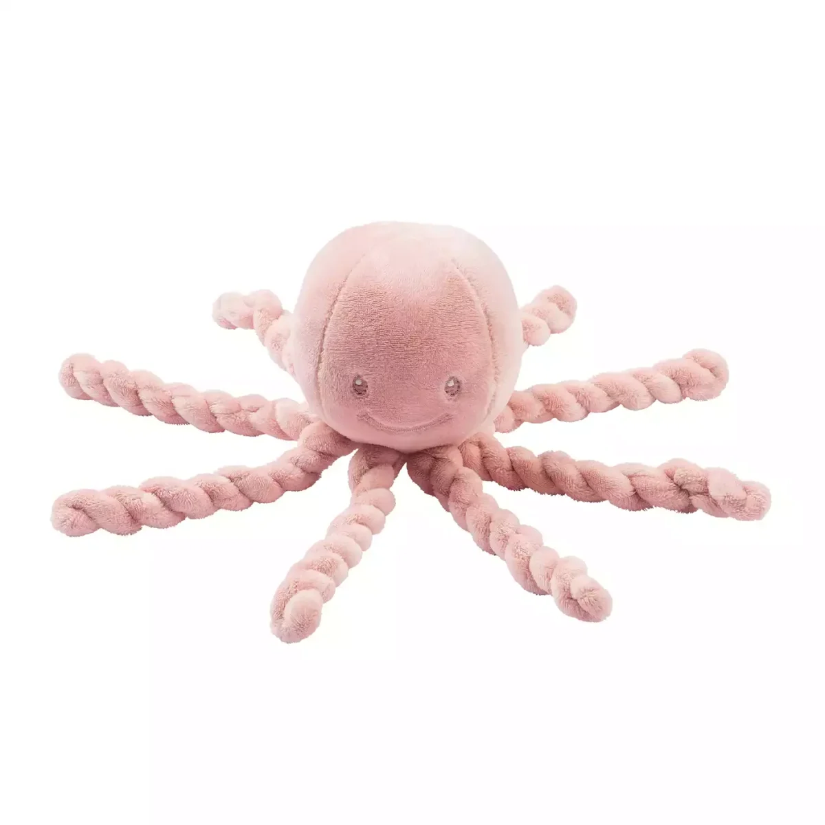 Dieser rosafarbene Lapidou Kuscheloktopus von Nattou ist ganz leicht und knautschig und wurde speziell für den natürlichen Greifreflex von Neugeborenen entwickelt.