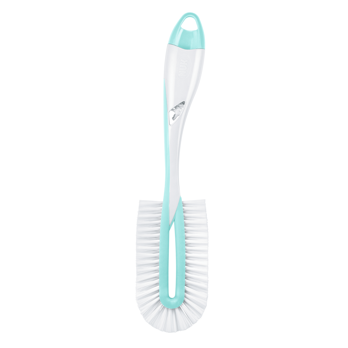 Mit der Flaschenbürste Twist von NUK wird das Reinigen von Babyfläschchen und -saugern zum Kinderspiel! Der bewegliche Bürstenkopf ermöglicht dir mit seinen Nylonborsten eine besonders gründliche Reinigung. Und auch schwer zu erreichende Rückstände lassen sich problemlos entfernen. Mit der kleinen Saugerbürste im Griff kannst du außerdem Trinksauger optimal sauber machen.