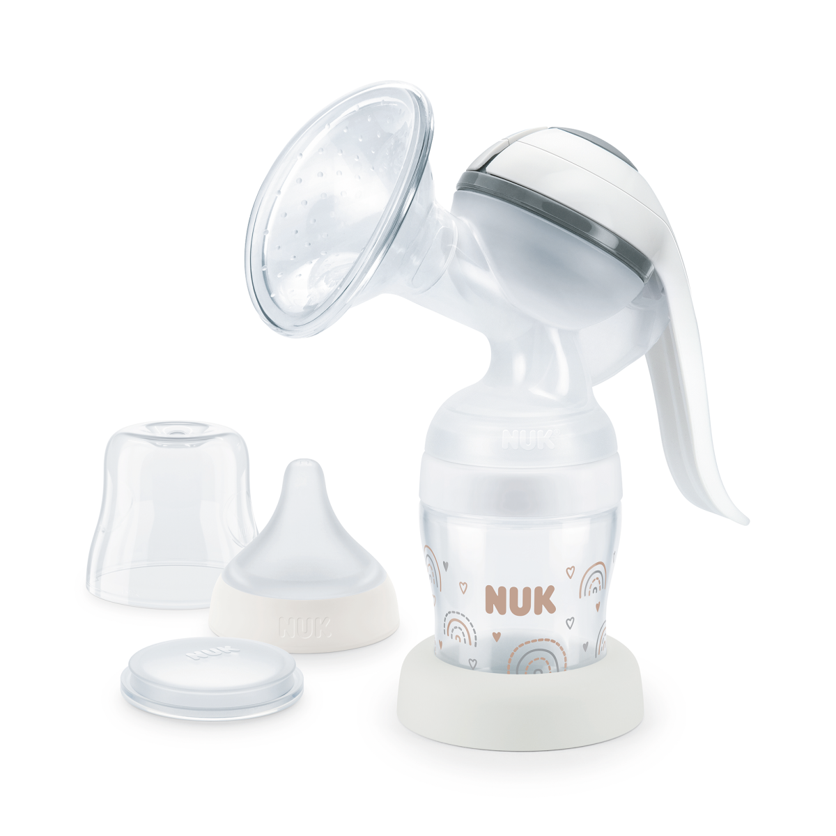 Die Handmilchpumpe Perfect Match von NUK garantiert ein müheloses und sanftes abpumpen. Die Milchpumpe verfügt über super weiche Silikonkissen mit feinen Noppen, die den Milchfluss anregen. Der Pumphebel ist zudem ergonomisch geformt und besonders leichtgängig und der Standfuß passend für die NUK Perfect Match Flasche sorgt für ein sicheres Abstellen der Pumpe. Zum Aufbewahren der Milch einfach die Dichtscheibe mit Ring auf die Flasche drehen.
