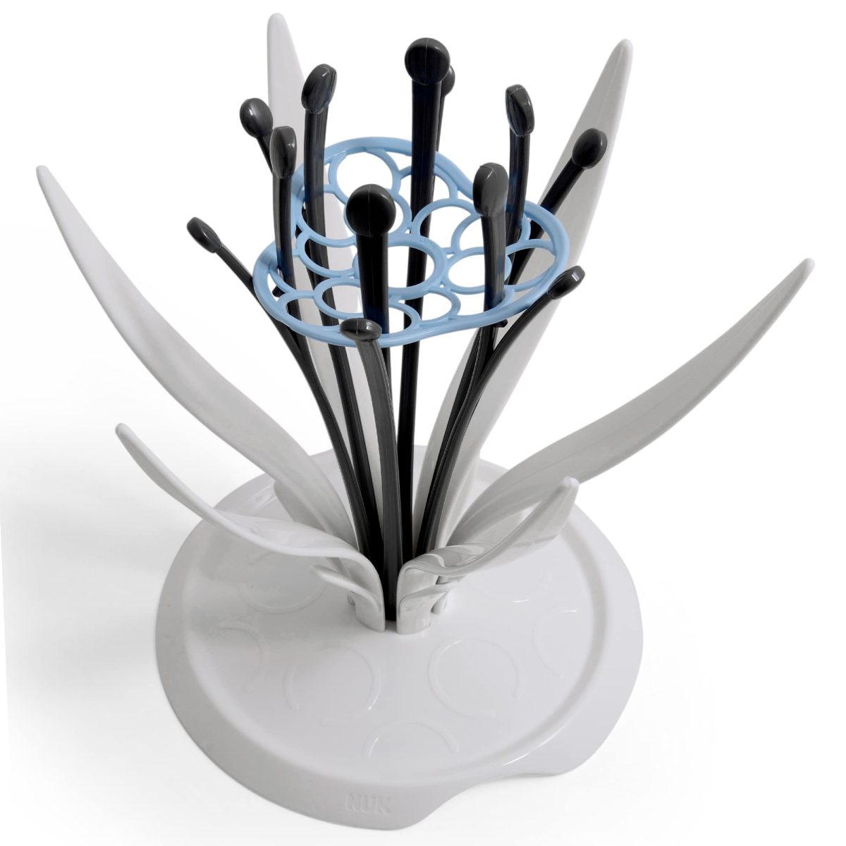 Der praktische Trockenständer von NUK bringt Ordnung in jede Küche und ermöglicht einfaches, rückstandfreies und hygienisches Trocken von Flaschen und Zubehör. An dem Trockenständer finden bis zu 6 Flaschen und andere Babyartikel wie Schnuller, Trinksauger oder Breilöffel zeitgleich platz. Der kreisförmige Fuß bietet einen sicheren Stand und fängt zusätzlich abtropfendes Wasser auf.