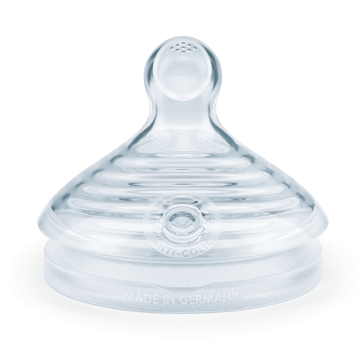 Die extra breite und weiche Lippenauflage mit mehreren feinen Trinköffnungen sorgt für ein vertrautes Trinkgefühl wie an Mamas Brust, sowie einen gleichmäßigen und natürlichen Trinkfluss. Die Form des Saugers passt sich flexibel der Zunge und dem Gaumen an, wenn dein Baby daran saugt. Das verwendete Material ist weich, gibt den Lippen deines Babys dieses vertraute Gefühl und ist außerdem BPA-frei.