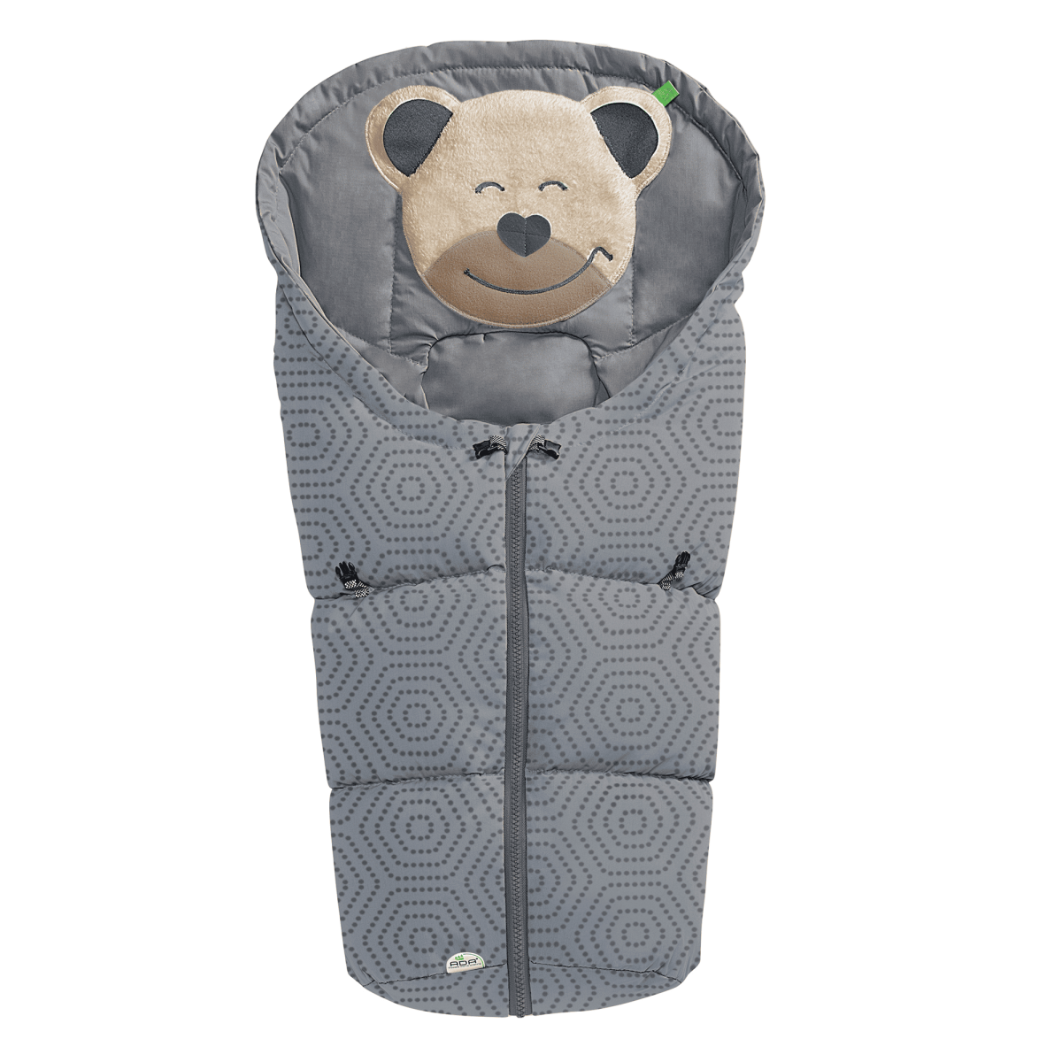 Bärig kuschelig, wunderbar warm und super funktional: Das Fußsäckchen Mucki ist der ideale Begleiter für die kalte Jahreszeit und wärmt mit seinem freundlich-sympathischen Mucki-Gesicht bereits beim Ansehen das Herz.