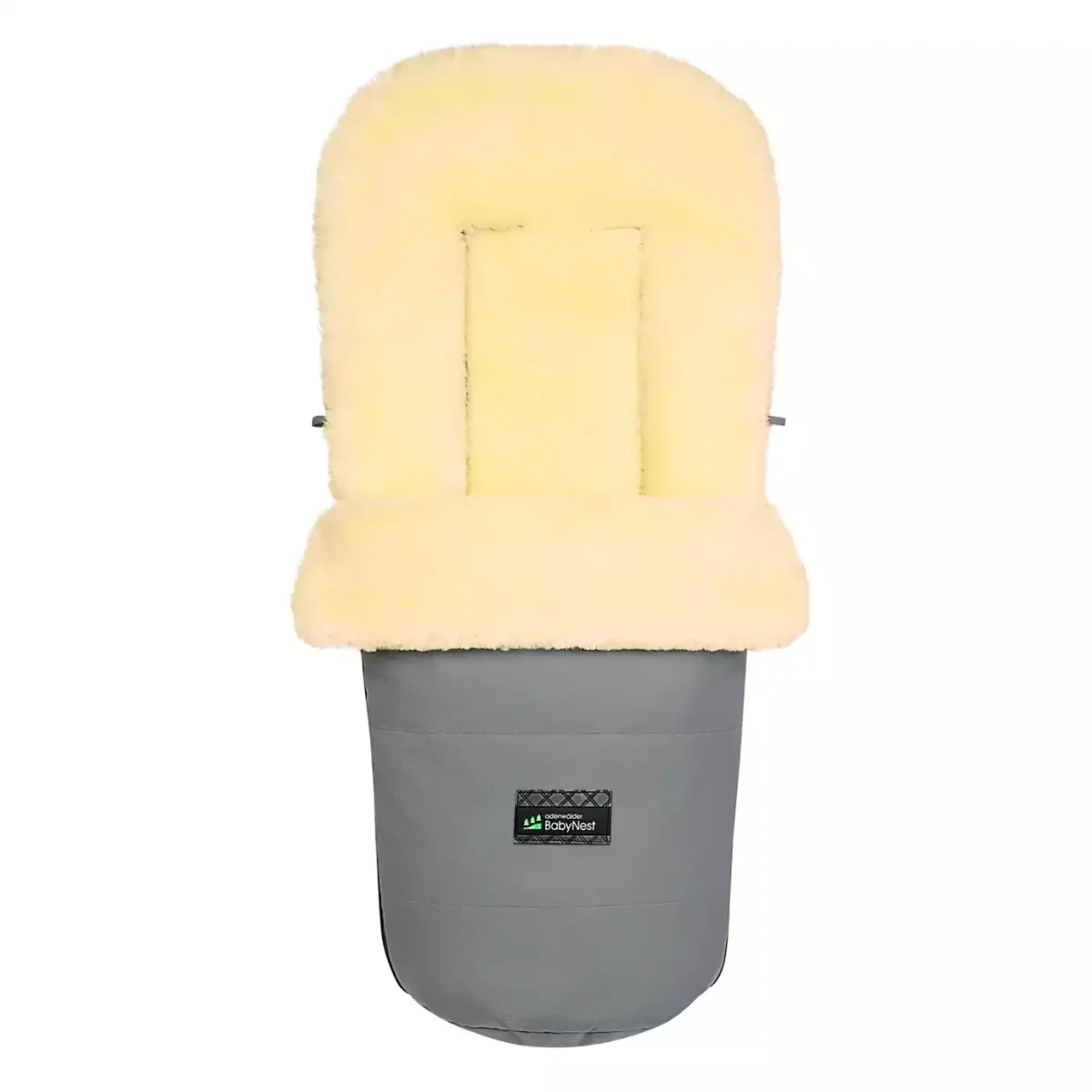 Der Lammfell-Fußsack Leon Plus besitzt eine Komfortlänge von 95 cm und ist für Kinder von 6 bis 36 Monaten geeignet.