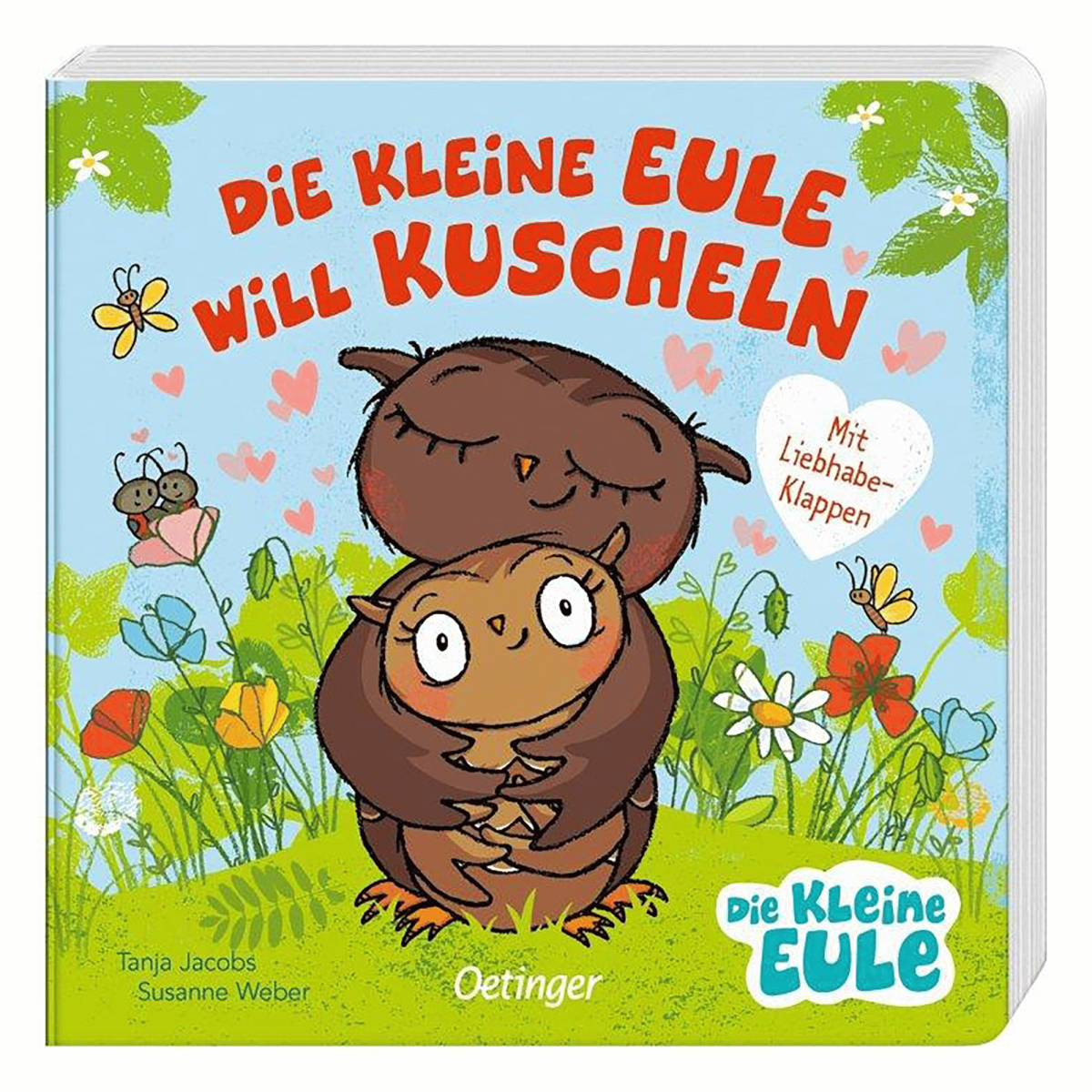 Weil die Eule kuscheln mag, sagt Papa: »Heut ist Kuscheltag.« Also zieht die kleine Eule los und lässt sich von all ihren Freunden und Freundinnen drücken. Das Besondere dabei: Bei diesem Buch lassen sich die Liebhabe-Klappen zu einer Umarmung schließen, so herzt ein Tier nach dem anderen die kleine Eule.