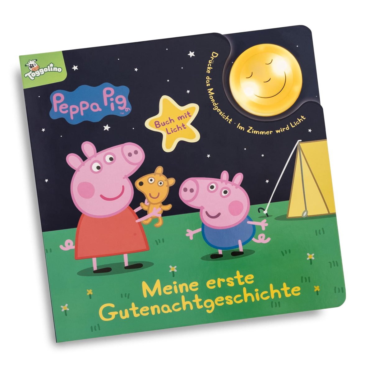 „Peppa Pig: Meine erste Gutenachtgeschichte“ ist eine liebevoll illustrierte Gutenachtgeschichte mit Licht. Dein Schatz kann einfach auf den Mond drücken, um das Licht anzuschalten. Nach ein paar Sekunden geht es wieder von alleine aus.