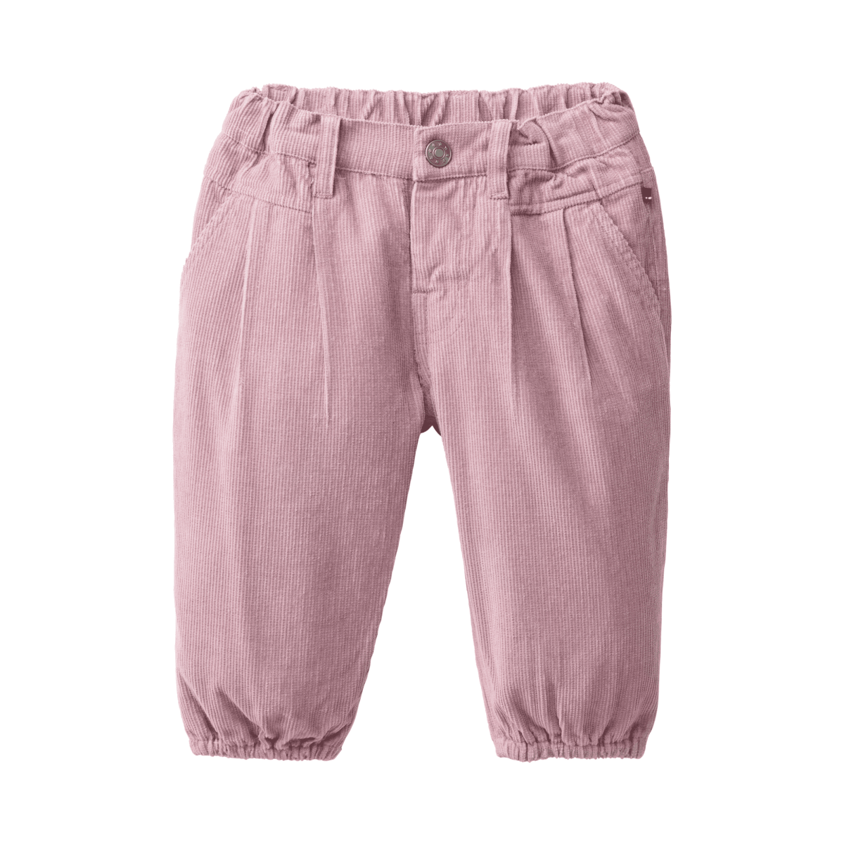 Die Cordhose von People Wear Organic ist eine modische und robuste Wahl für deinen kleinen Liebling. Mit ihren Bundfalten, den Eingriffstaschen und dem angedeuteten Verschluss mit Druckknopf vereint sie Stil und Funktionalität. Der weiche Cordstoff in der Farbe Malve und der geraffte Hosensaum sorgen für ein angenehmes Tragegefühl. Dies wird durch das Material aus 100% Bio-Baumwolle noch unterstützt.