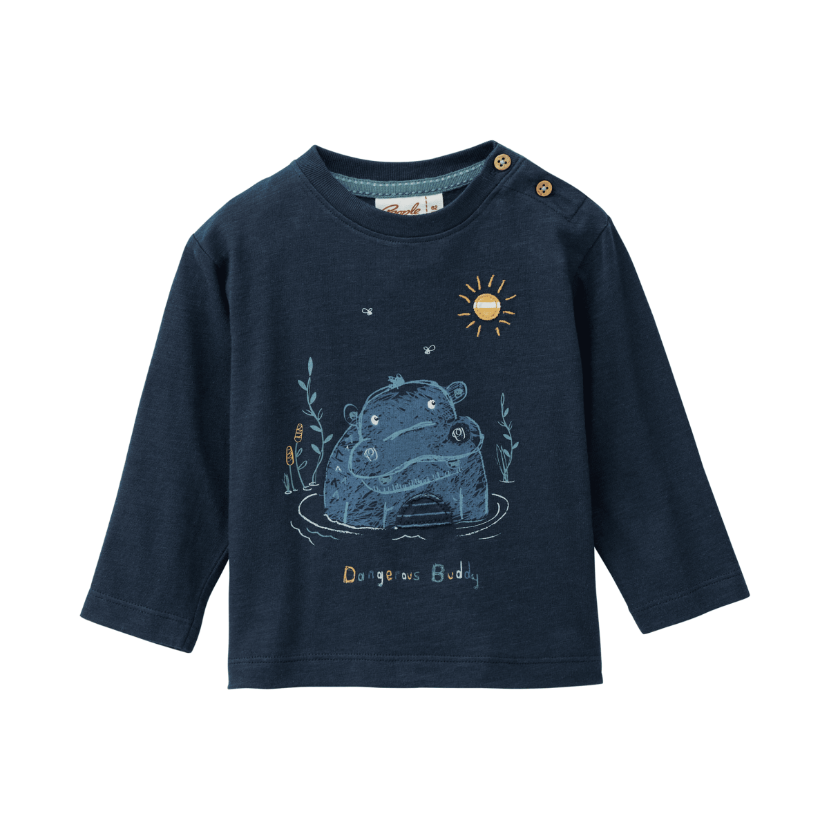 Das Langarmshirt Hippo von People Wear Organic ist ein süßes und bequemes Oberteil für kleine Tierfreunde. Gefertigt aus 100% Bio-Baumwolle, fühlt es sich besonders weich auf der Haut an. Der dunkle Blauton wird durch eine niedliche Flusspferd-Applikation mit liebevollen Details ergänzt. Praktische Knöpfe an der Schulter erleichtern das An- und Ausziehen. Perfekt für kühlere Tage und gemütliche Stunden!