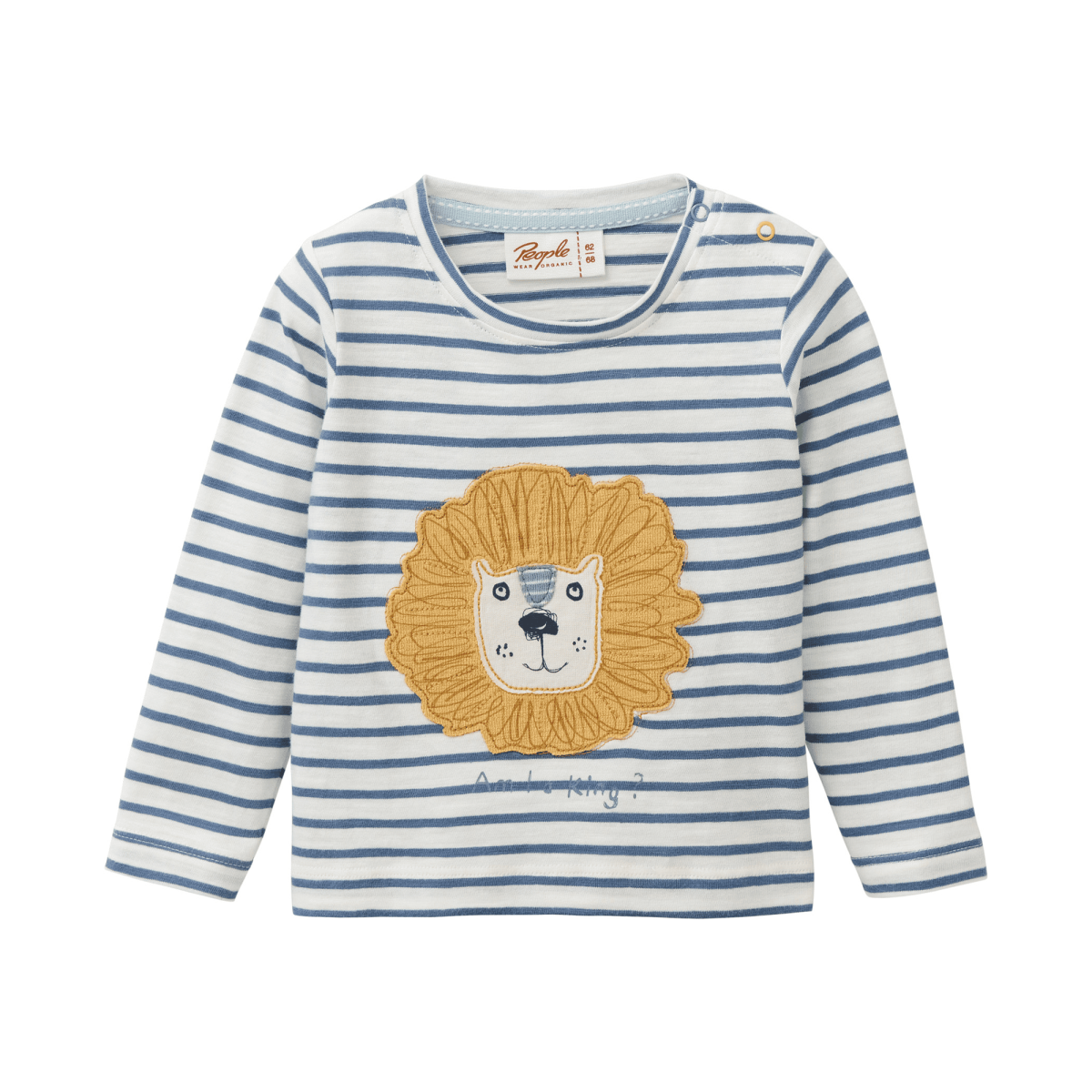 Das Langarmshirt Löwe von People Wear Organic ist ein echter Hingucker für kleine Tierfreunde. Gefertigt aus 100% Bio-Baumwolle, bietet es ein besonders weiches und angenehmes Tragegefühl. Das gestreifte Design in Blau und Weiß wird durch eine aufwendig gestaltete Löwen-Applikation ergänzt. Praktische Druckknöpfe an der Schulter erleichtern das An- und Ausziehen. Perfekt für den Alltag oder besondere Anlässe!