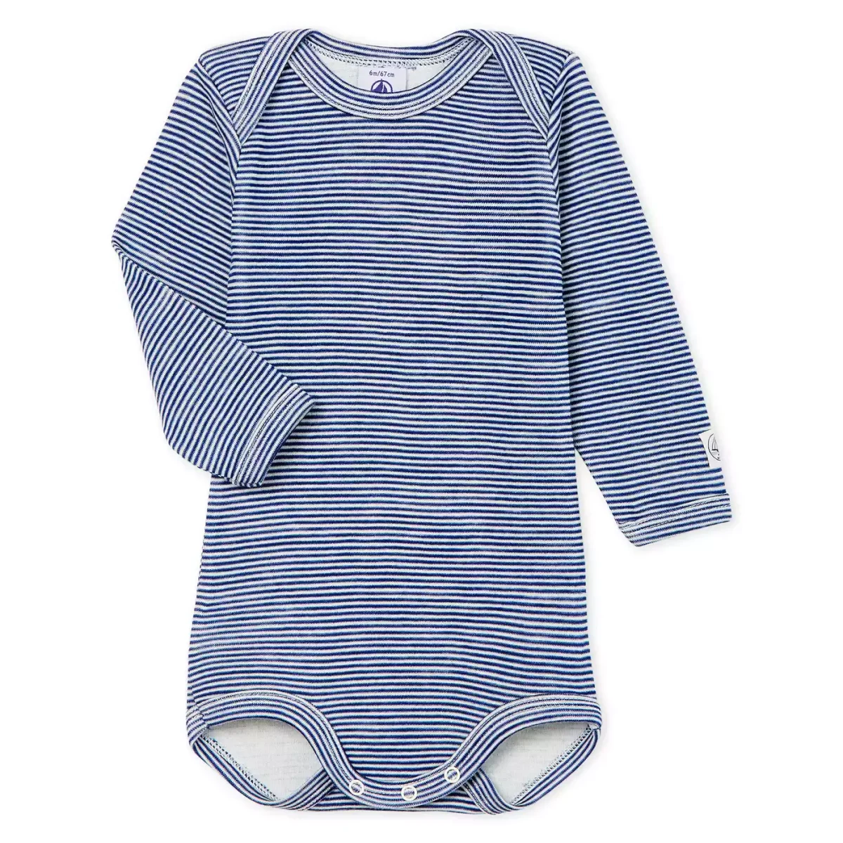 Das Body Ringel von PETIT BATEAU ist blau-weiß gestreift. Die Druckknöpfe machen aus dem An- und Ausziehen ein Kinderspiel. Das Material des PETIT BATEAU Langarmbodys ist besonders hautverträglich.