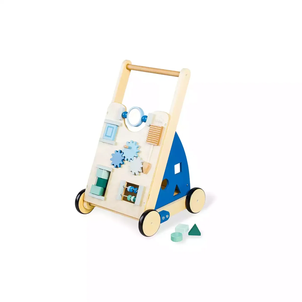 Der neue Activity-Lauflernwagen Titus von Pinolino sorgt mit vielen bunten Spielmöglichkeiten, ein rückseitiges Ablagefach und 3 Steckklötze für jede Menge Abwechslung beim Spielen, wenn mal eine Laufpause eingelegt wird. Die stabile Lauflernhilfe bietet deinem Kind einen sicheren Stand, ohne das der Wagen umkippt. Das Bremssystem hilft die ersten noch unsicheren Gehversuche gut zu meistern. Die Bremswirkung lässt sich durch die Bremsklötze aus Holz ganz einfach stufenlos und werkzeugfrei einstellen. Sowohl für Mädchen als auch Jungs von ca. 1 – 6 Jahren ist der Lauflernwagen geeignet und fördert neben dem Laufen lernen auch die Motorik und ist somit eine tolle Geschenkidee.