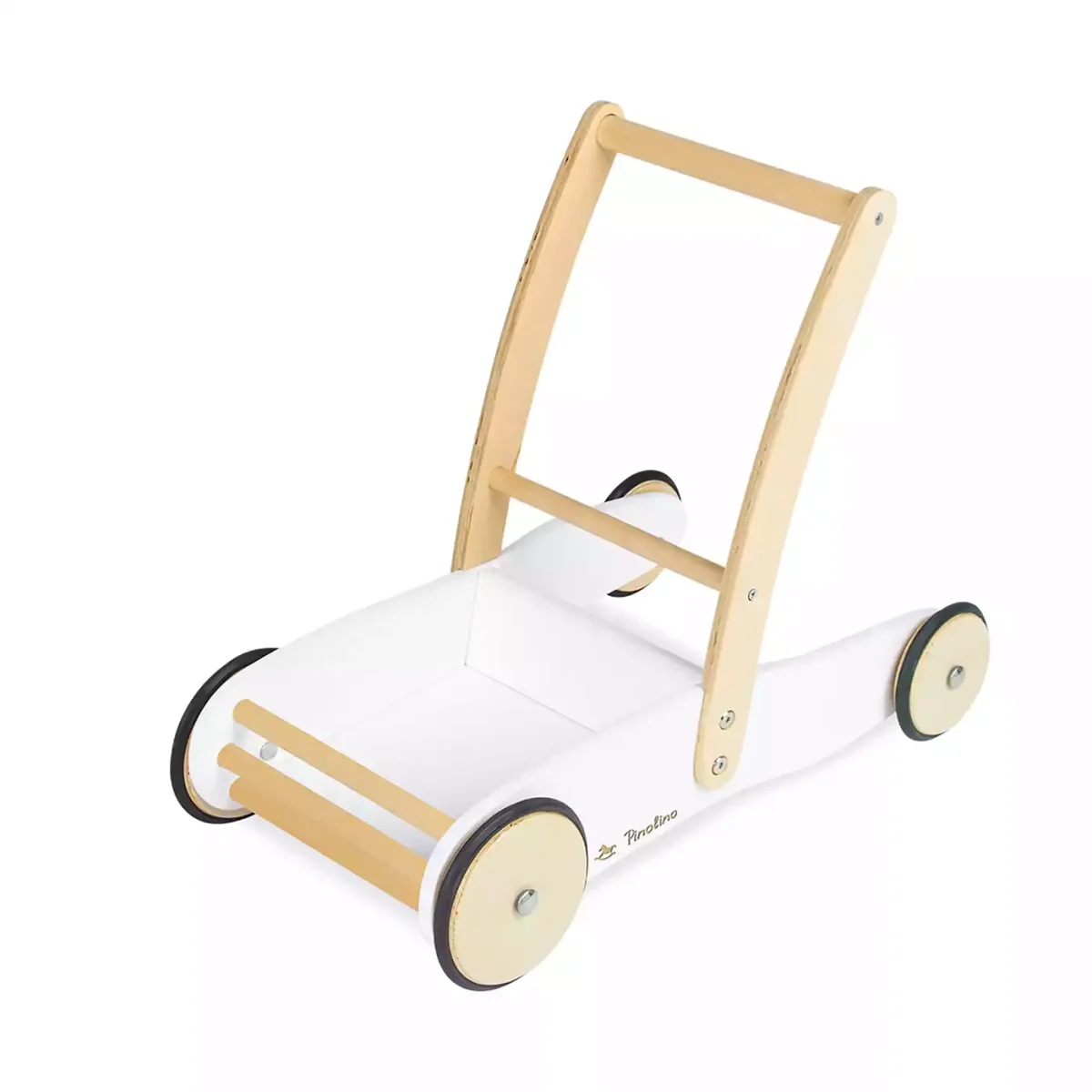 Der Pinolino Lauflernwagen Uli, inkl. Bremssystem, gummierten Holzrädern und Stahlachsen, besteht aus massiver Buche und ist weiß sowie klar lackiert. Das durchdachte Bremssystem hilft die ersten noch unsicheren Gehversuche gut zu meistern. Die Bremswirkung lässt sich durch die Bremsstange aus Rundstahl mit Kunststoff-Endkappen ganz einfach stufenlos und werkzeugfrei einstellen. Die große Ladefläche bietet mit einem Bodenmaß von 23 x 24 cm außerdem jede Menge Platz für die wichtigsten Spielsachen, die man auf einer Erkundungstour braucht. Der Kinderlaufwagen Uli von Pinolino ist für Mädchen und Jungs von 1 bis 6 Jahren geeignet. Die besonders stabile und robuste Lauflernhilfe bietet deinem Kind einen sicheren Stand. So kann es problemlos Laufen lernen, ohne dass der Wagen umkippt.