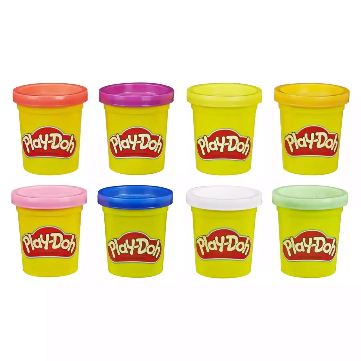 Mit den acht wunderschönen Dosen Knete von Play-Doh in tollen Regenbogenfarben entstehen bezaubernde Kreationen mit einer Extraportion Farbe. Das Set enthält 56g-Dosen in verschiedenen Farben und diese Farben können für noch mehr Spaß einfach munter miteinander gemischt werden.