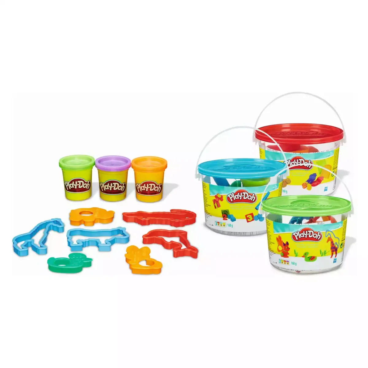 Mit dem lustigen Spaßeimer von Play-Doh wird dein kleiner Schatz einen großen Knetspaß erleben. Im Lieferumfang ist ein Eimer mit bis zu 12 Zubehörteilen und drei Dosen Knete enthalten. Es gibt drei verschiedene Themenwelten: Picknick, Tierspaß oder Zahlen.