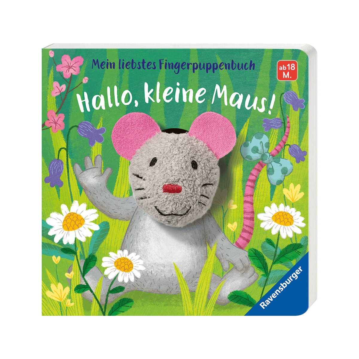 Mit „Mein liebstes Fingerpuppenbuch: Hallo, kleine Maus!“ von Ravensburger kann die Geschichte der kleinen Maus zum Leben erweckt werden. Gemeinsam mit deinem Kind begleitest du die kleine Maus, wie sie von einem lustigen Abenteuer ins Nächste hüpft. Die Geschichte ist auf fünf Doppelseiten liebevoll gestaltet. Dabei animiert vor allem die niedliche Fingerpuppe dein Kind zum Tasten, Fühlen und Begreifen und fördert somit spielerisch seine Feinmotorik.