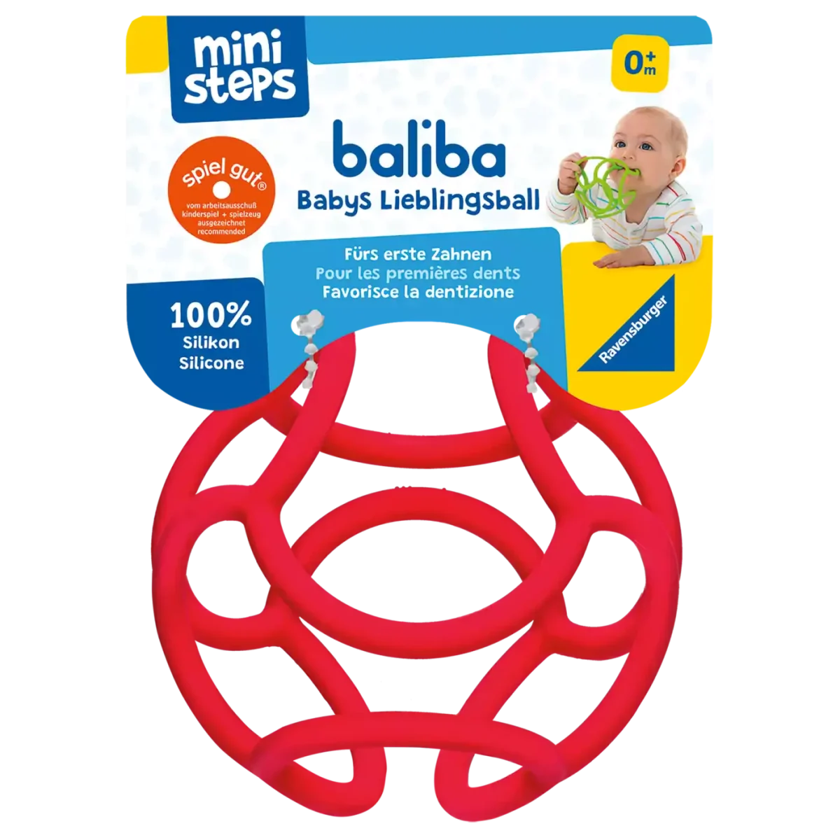 Der leichte, flexible Baliba Ball von Ravensburger ist ein absolutes Highlight! Dank seiner offenen Struktur ist er super leicht zu greifen. So gelingt es schon den Jüngsten, ihn zum Erkunden zum Mund zu führen. Beim Zahnen wird das Herumkauen auf dem weichen Silikon zur wertvollen Beißhilfe. Zudem gibt es vielfältige Spielmöglichkeiten wie Ziehen, Quetschen oder Werfen. So kann dein kleiner Schatz mit der Zeit immer wieder neue Beschäftigungen entdecken, die seine motorische Entwicklung umfassend und nachhaltig fördern.