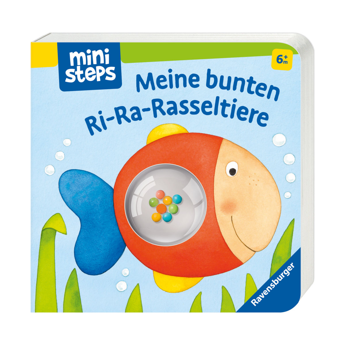 Für Freude und Begeisterung sorgt das Kinderbuch ministeps: Meine bunten Ri-Ra-Rasseltiere von Ravensburger. Die niedlichen Tiere mit integrierter Rassel wecken die Neugier deines Babys und fördern die Entwicklung der Sinne. Dabei laden die Bilder zusammen mit kurzen Reimen zum Entdecken und Betrachten ein.