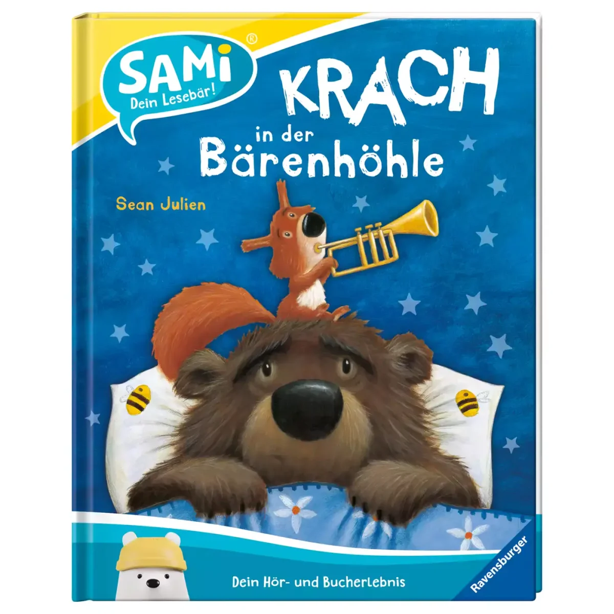Mit SAMi – dein Lesebär, von Ravensburger, taucht dein Kind selbstständig in die Welt der Bilderbücher ein. Einfach ans Buch gesteckt, liest SAMi die Geschichte vor, während dein Kind durch das Buch blättert. Dabei erkennt SAMi genau, auf welcher Seite sich dein Kind befindet. Dein kleiner Schatz kann auf diese Weise frei im Buch vor- und zurückblättern und seine Lieblingsgeschichten beliebig oft anhören. So fördert SAMi die Selbstbeschäftigung und regt die Fantasie deines Kindes an.