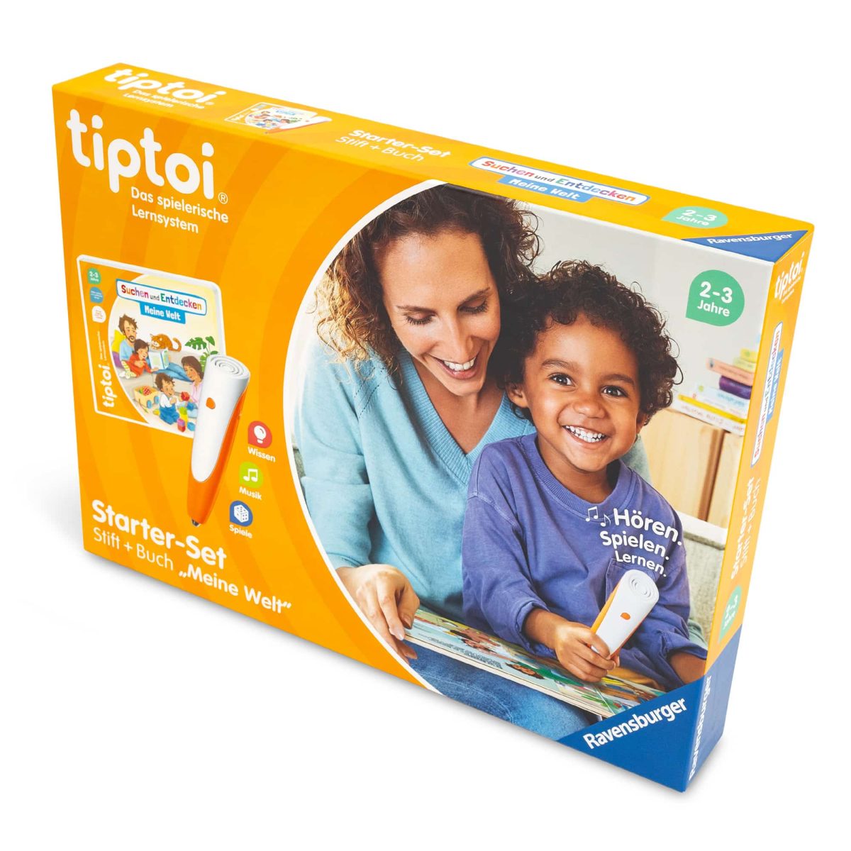 Auspacken und loslegen! Das Starter-Set Stift + Buch Meine Welt von Ravensburger ist perfekt für den Einstieg in tiptoi – das spielerische Lernsystem. Die benötigte Audiodatei ist schon auf dem Stift vorinstalliert und der integrierte Akku geladen. So kann dein Kind ab ca. 2 Jahren das enthaltene Buch Meine Welt sofort entdecken. Vom Einkaufen bis zum Spielplatz begleitet es Junis durch den Tag. Dank der Geräusche, Texte, Lieder und Suchbilder taucht dei Kind eigenständig und interaktiv in die Szenen ein. So macht Lernen richtig Spaß!