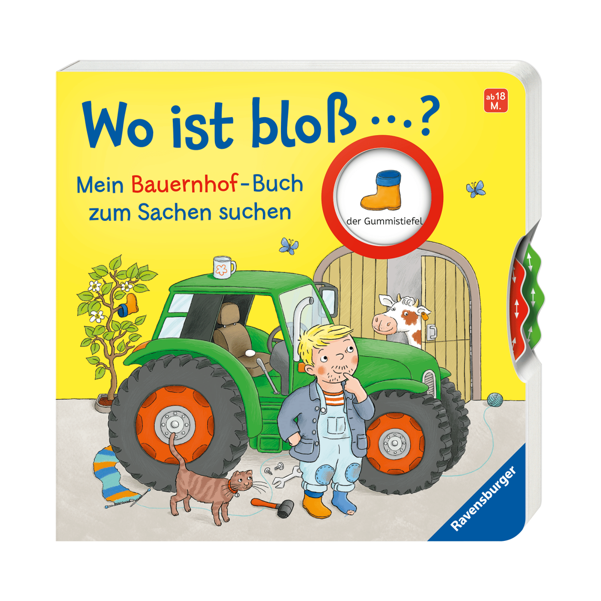 In dem Kinderbuch Wo ist bloß? Mein Bauernhof-Buch zum Sachen suchen von Ravensburger muss dein Kind dem Bauer Klaus dabei helfen, seine verlorenen Sachen zu suchen! Kombiniert wird ein interaktives Spielbuch mit einem spannenden Wimmelbuch und einer lustigen Vorlesegeschichte, die dein Kind begeistern wird. Auf jeder Seite gibt es Neues zu entdecken und zu lernen, was spielerisch die Sprachentwicklung und die Feinmotorik fördert.
