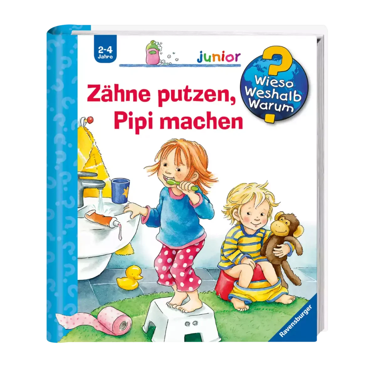 Das Band „Zähne putzen, Pipi machen“ zeigt den Kindern, was im Bad passiert. Es vermittelt die typischen Rituale rund ums Thema Hygiene im Badezimmer. Warum waschen wir uns die Hände? Wie oft sollte man die Zähne putzen? Was passiert beim Haareschneiden?
