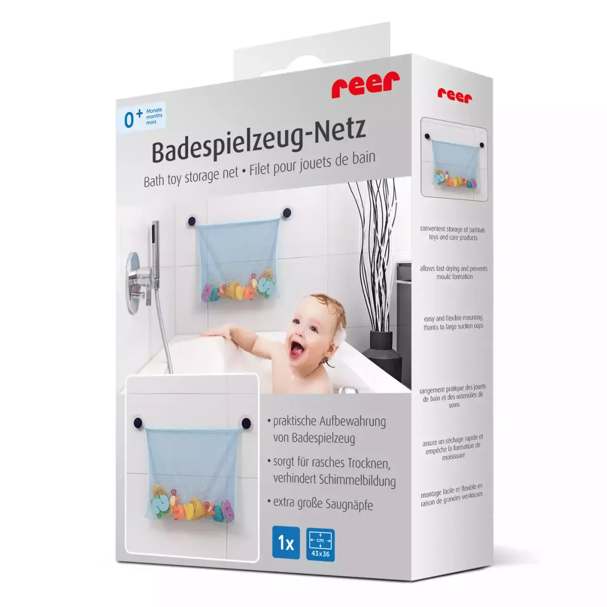 Das reer Badespielzeug-Netz kann dank seiner großen Saugnäpfe ganz einfach und flexibel befestigt werden. Außerdem sorgt das Netz für rasches Trocknen und verhindert so Schimmelbildung im Bad.
