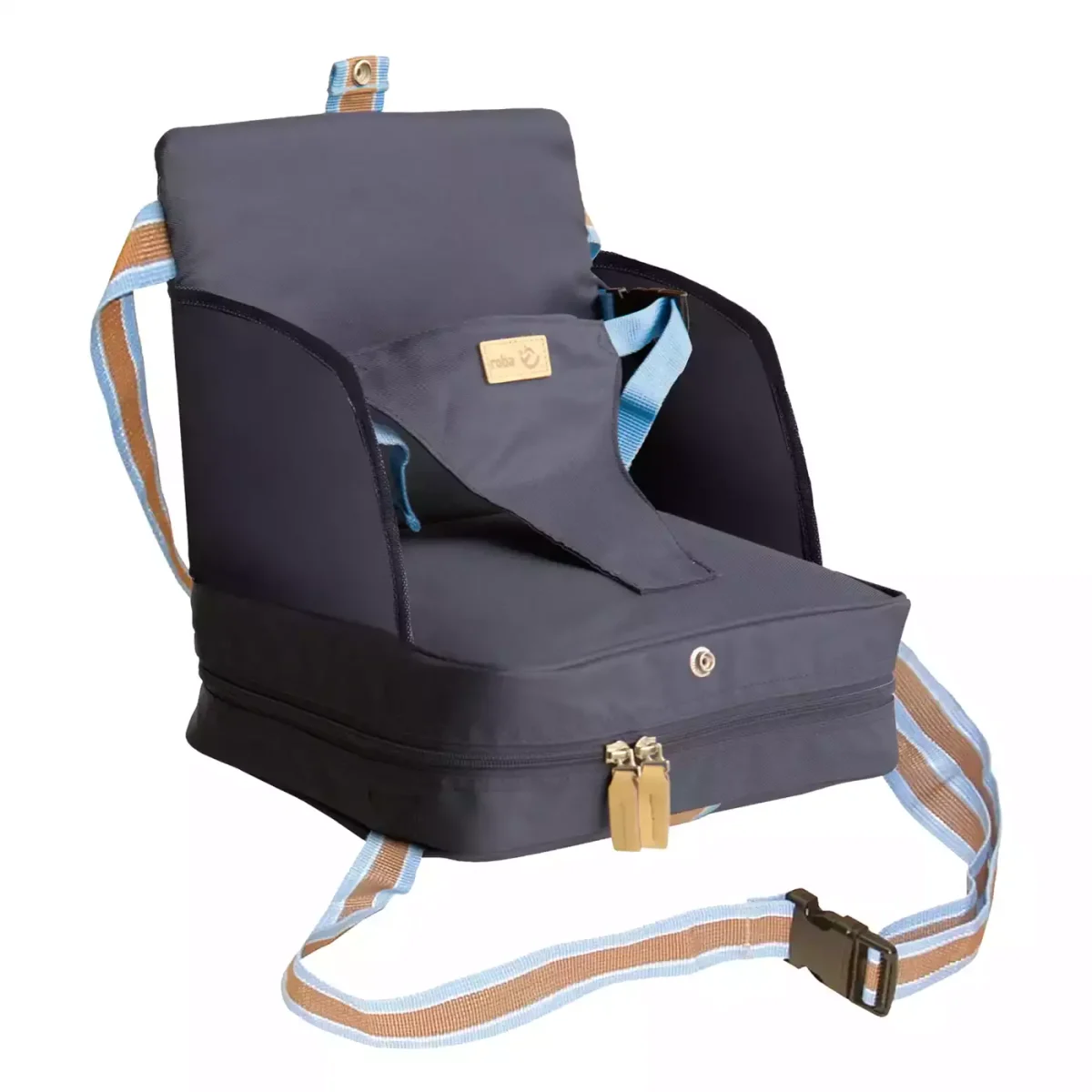 Der Boostersitz roba ist schnell und einfach einsatzbereit und ein sicherer Babysitz fürs Restaurant, bei Großeltern oder auch im Urlaub. Mit den leicht verstellbaren Gurten (einmal an der Rückenlehne und einmal unter der Sitzfläche) ist der Booster an fast allen gängigen Stühlen schnell und leicht anzubringen. Die Sitzfläche des Sitzes selbst besteht aus einem aufblasbarem Kissen, sodass dein Baby höher und weich sitzt.