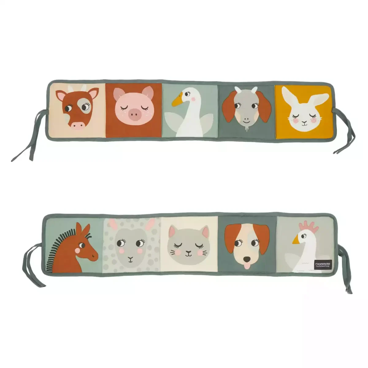 Dieses süße Stoffbuch von Roommate lädt dein Kind zum Entdecken, Greifen & Spielen ein. Auf jeder Seite dieses Buchs ist ein anderes Tier abgebildet.