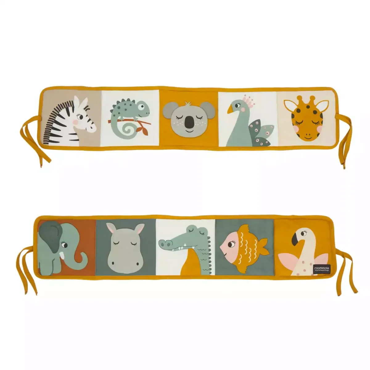 Dieses süße Stoffbuch von Roommate lädt dein Kind zum Entdecken, Greifen & Spielen ein. Auf jeder Seite dieses Buchs ist ein anderes Tier abgebildet.