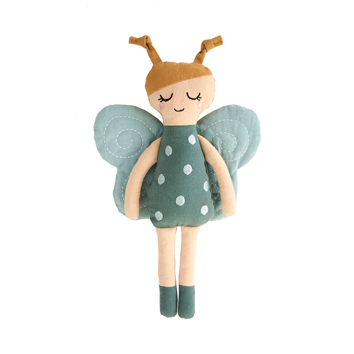 Die Puppe Schmetterling von Roommate ist eine zauberhafte Begleiterin, die deinen kleinen Schatz mit ihrem liebevollen Design zum Spielen und Kuscheln einlädt. Ihr niedliches, gepunktetes Kleid harmoniert perfekt mit den großen, bestickten Schmetterlingsflügeln.