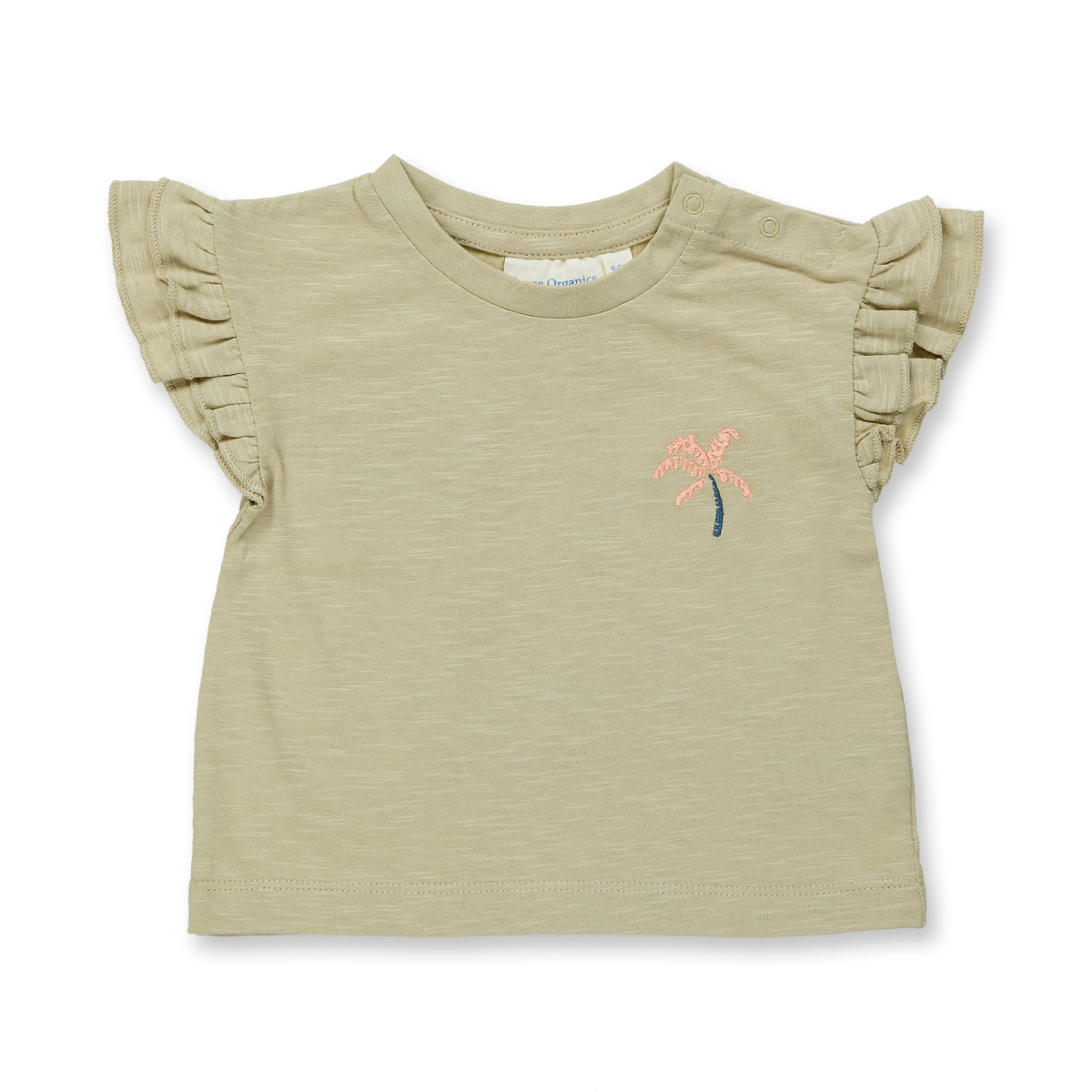 Das T-Shirt Palme von Sense Organics ist ein sommerlich leichtes Oberteil mit liebevollen Details. Die verspielten Rüschenärmel und die kleine Palmenstickerei auf der Brust machen es zu einem besonderen Hingucker. Hergestellt aus 100% Baumwolle und GOTS-zertifiziert ist es besonders hautfreundlich und nachhaltig. Dank Druckknöpfen an der Schulter lässt es sich ganz einfach an- und ausziehen.